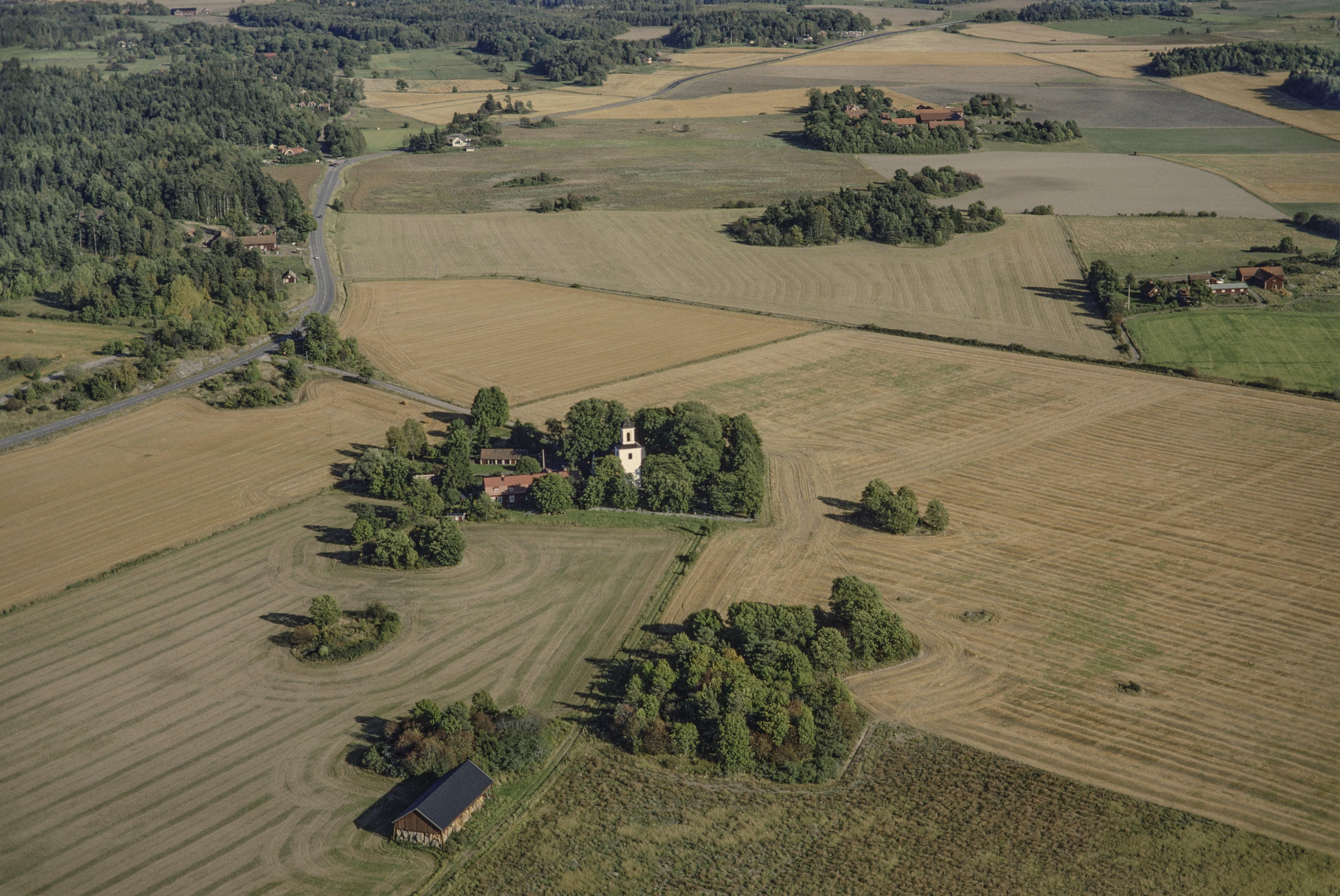 Beskrivning: Alsike kyrka vid bildens mitt. Uppe till höger Tuna by. Bilden är tagen mot (väderstreck): Ö