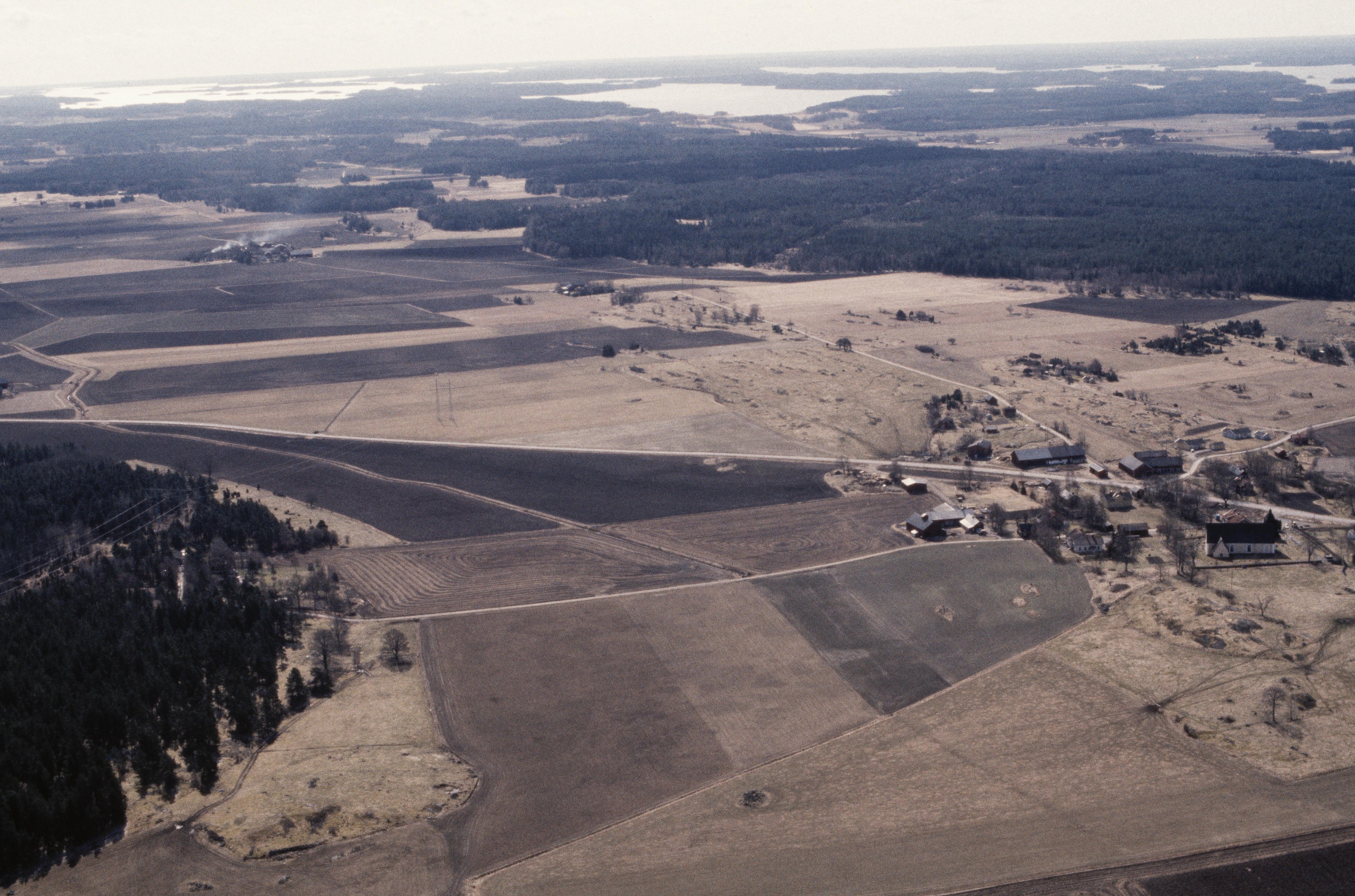 Beskrivning: I bildens nedre del område med hällristningar RAÄnr Boglösa 172:1-7. Till höger Boglösa kyrka och kyrkby. I bildens övre del socknen Lillkyrka, Vallby, Kungs-Husby m.fl. mot Stabyfjärden i Mälaren. Bilden är tagen mot (väderstreck): SO