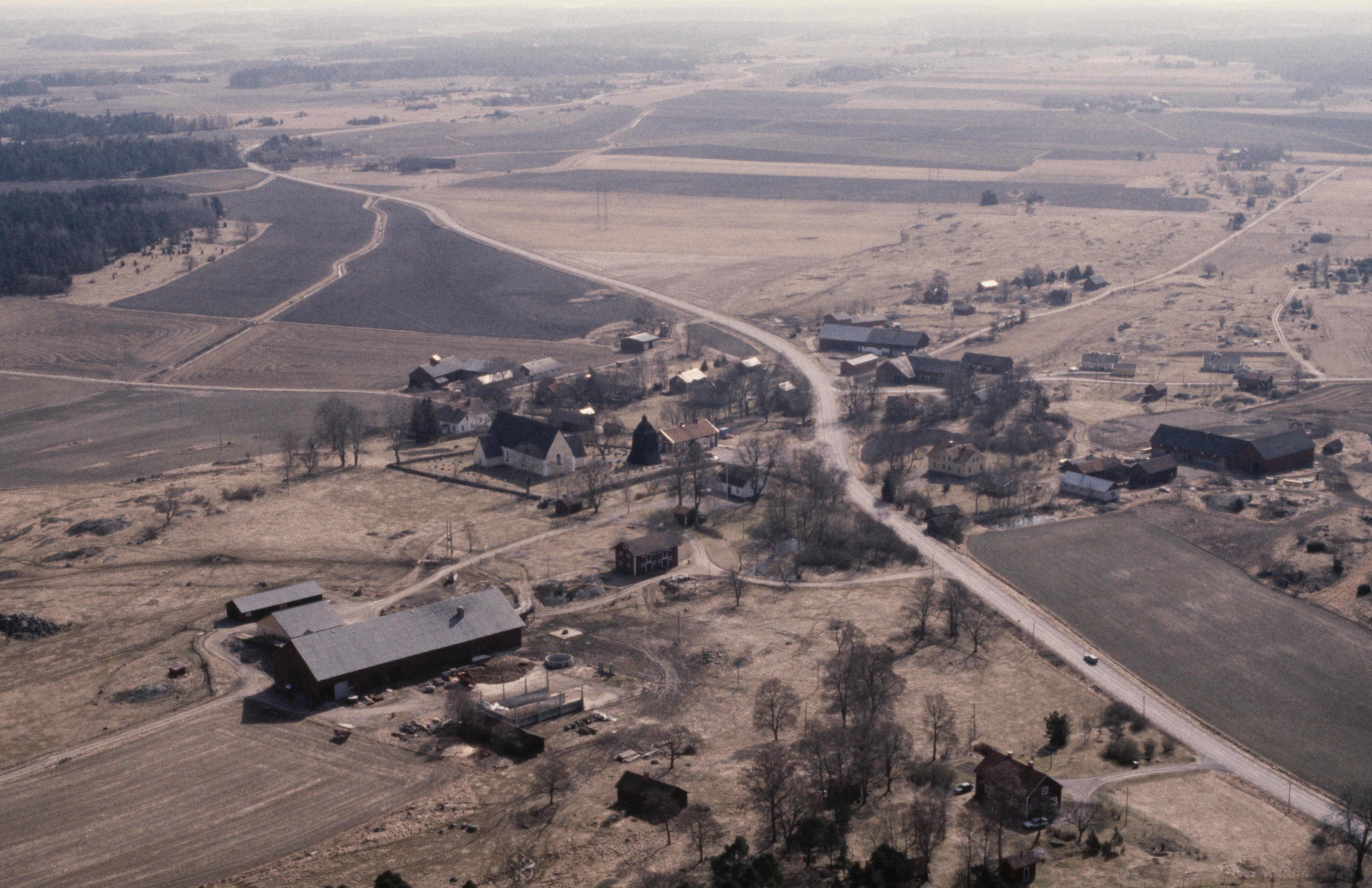 Beskrivning: Boglösa kyrka och kyrkby. Vid kyrkan boplats RAÄnr Boglösa 582:1. Bilden är tagen mot (väderstreck): SO