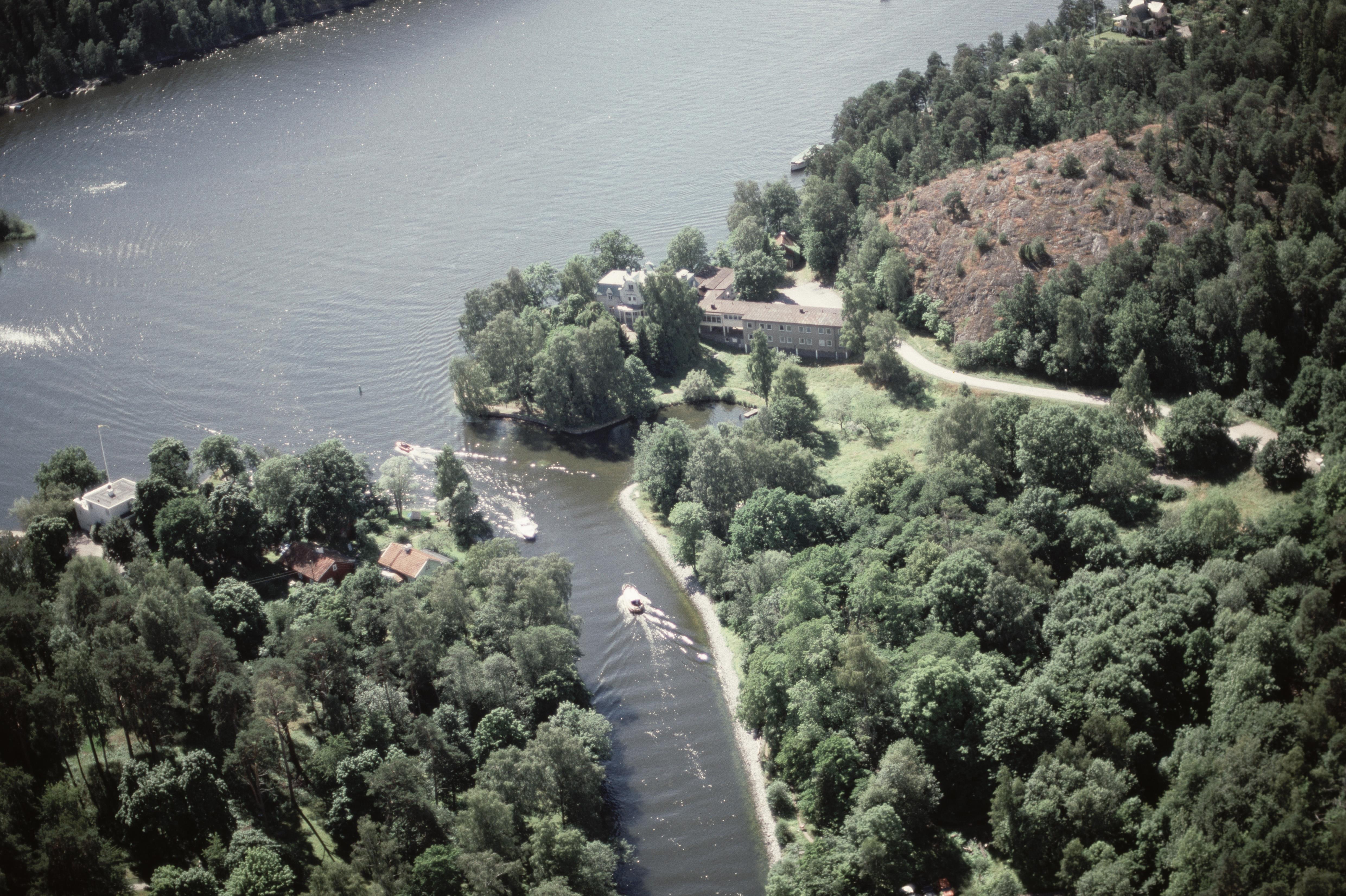 Beskrivning: Kanalen Stäket mellan Skogsö och Lännersta mot Lännerstasundet (i bildens övre del). Skansar RAÄnr Nacka 166:1 nere till v. och till h. RAÄnr Boo 18:1 och 19:1. Bilden är tagen mot (väderstreck): SV