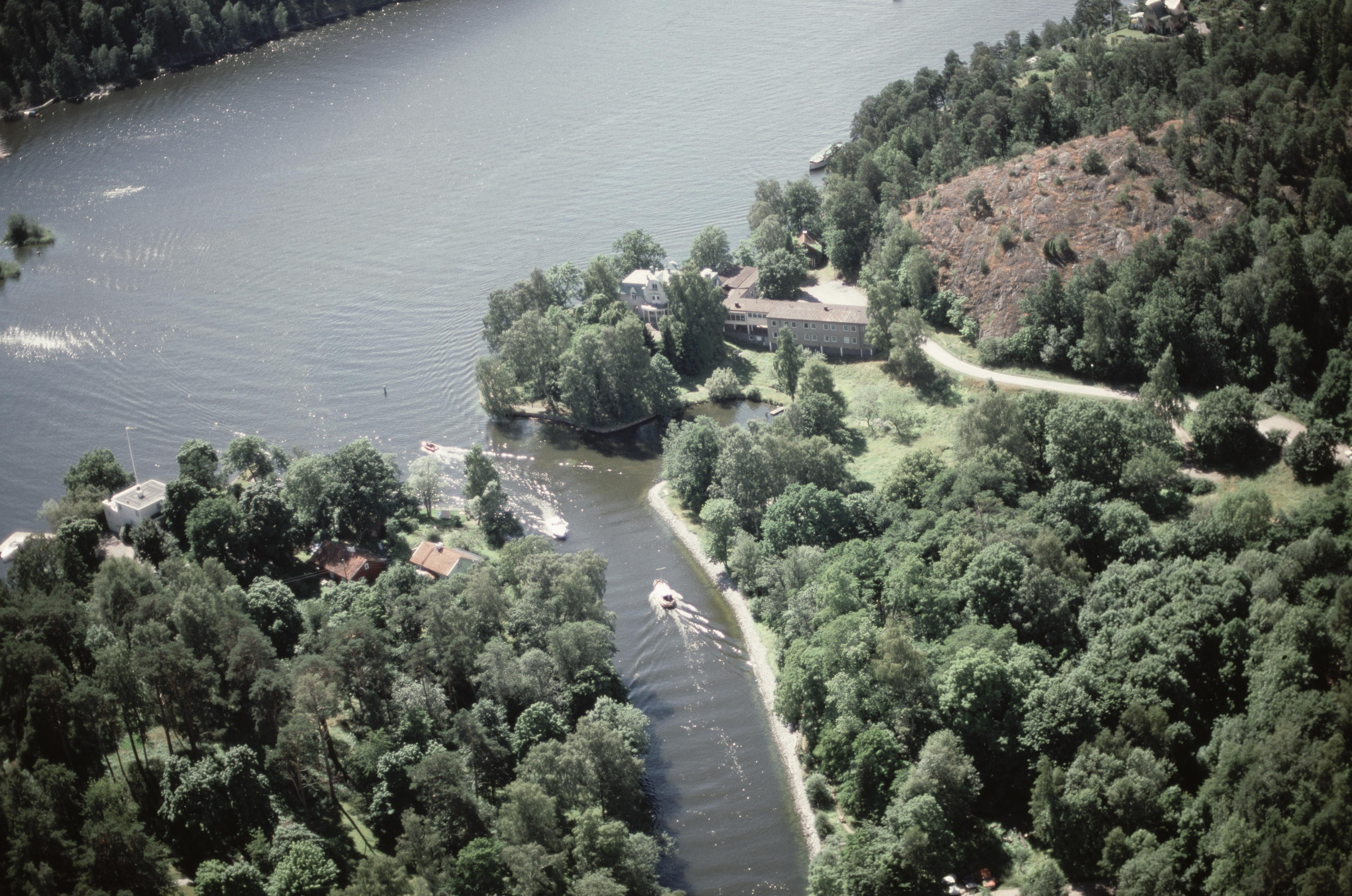 Beskrivning: Kanalen Stäket mellan Skogsö och Lännersta mot Lännerstasundet (i bildens övre del). Skansar RAÄnr Nacka 166:1 nere till v. och till h. RAÄnr Boo 18:1 och 19:1. Bilden är tagen mot (väderstreck): SV