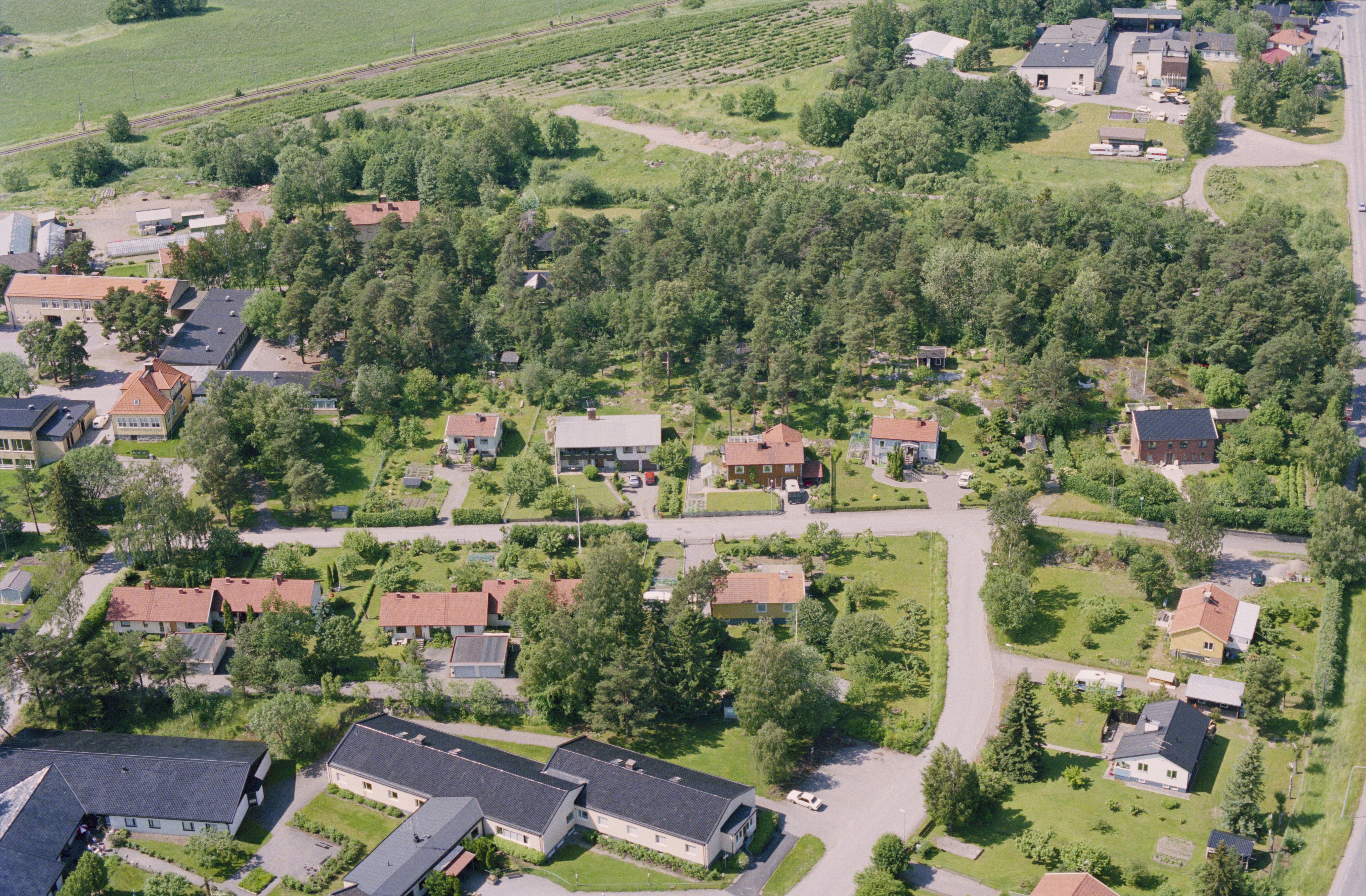 Beskrivning: Området Råby, norrväst i Bro tätort. Vid bildens mitt område med hällristningar RAÄnr Bro 250:1-3. Till höger Norrgårdsvägen och uppe i bildens högra kant Enköpingsvägen. Bilden är tagen mot (väderstreck): VSV
