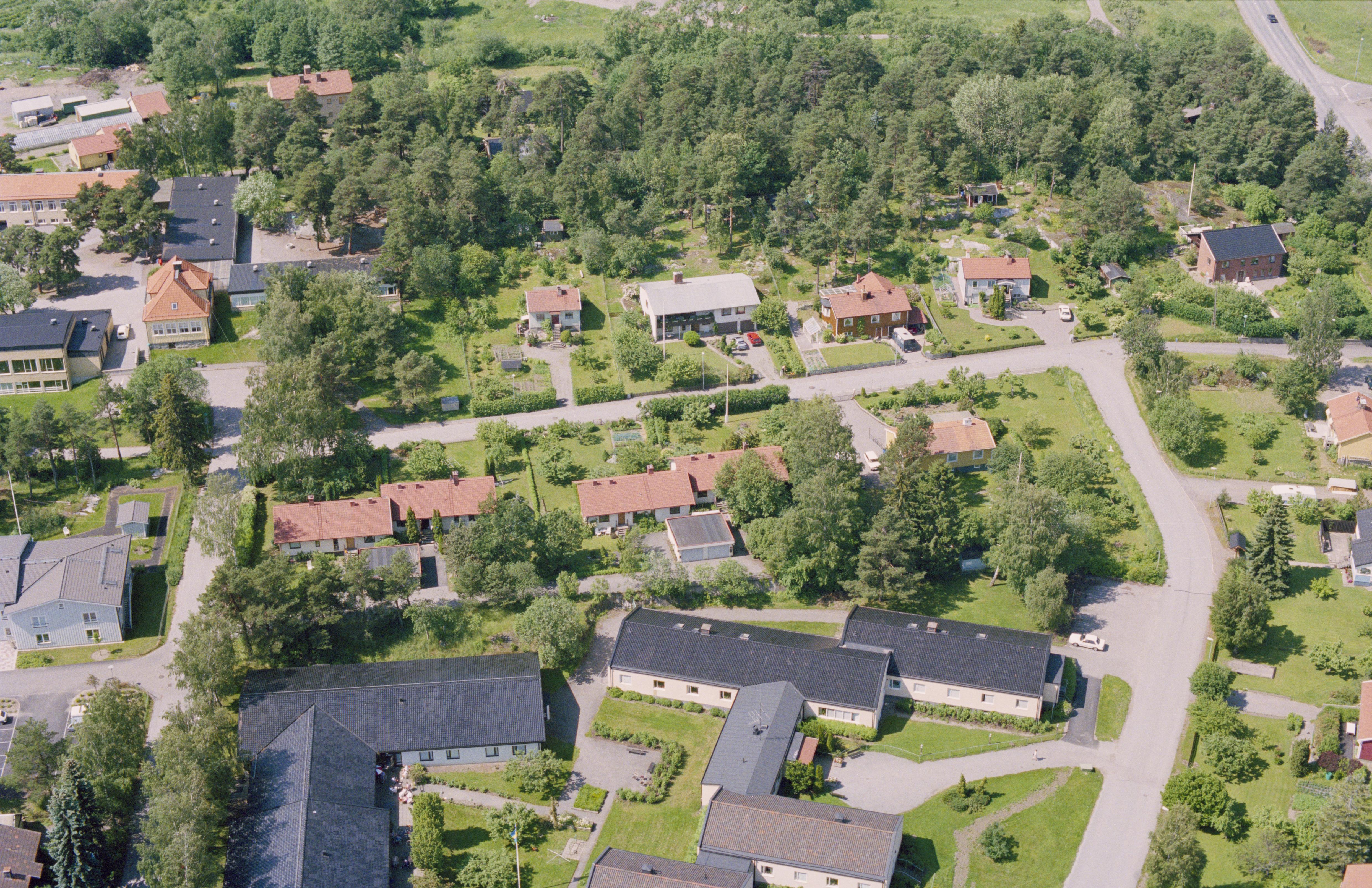 Beskrivning: Området Råby, norrväst i Bro tätort. Vid bildens mitt område med hällristningar RAÄnr Bro 250:1-3. Till höger Norrgårdsvägen och uppe i bildens högra kant Enköpingsvägen. Bilden är tagen mot (väderstreck): VSV