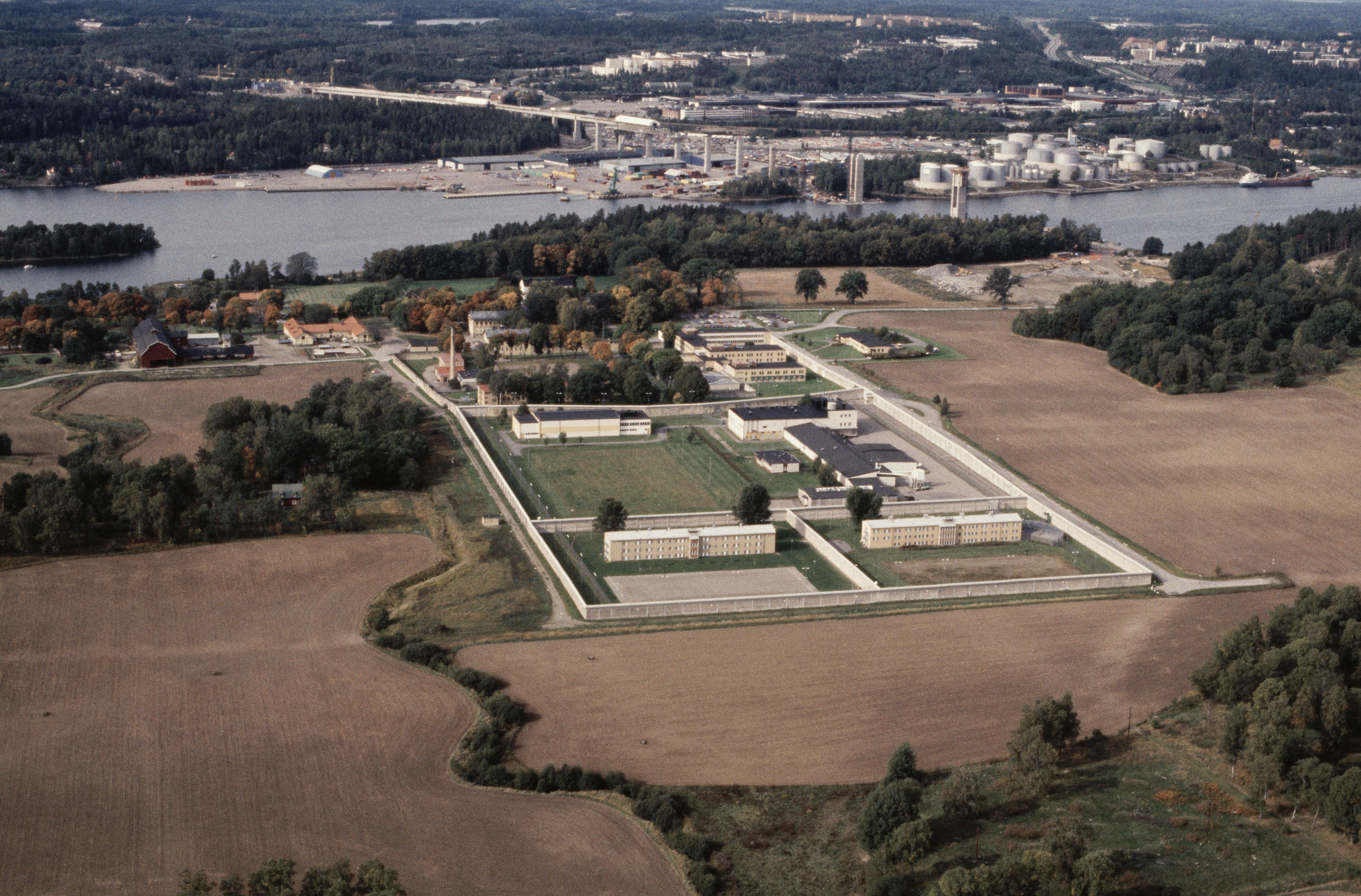 Beskrivning: Anstalten Hall vid Igelstaviken. Till höger om bildens mitt Hågelby gamla tomt RAÄnr Östertälje 242:1. I bildens övre del Sydhamnen i Södertälje stad. Bilden är tagen mot (väderstreck): VNV