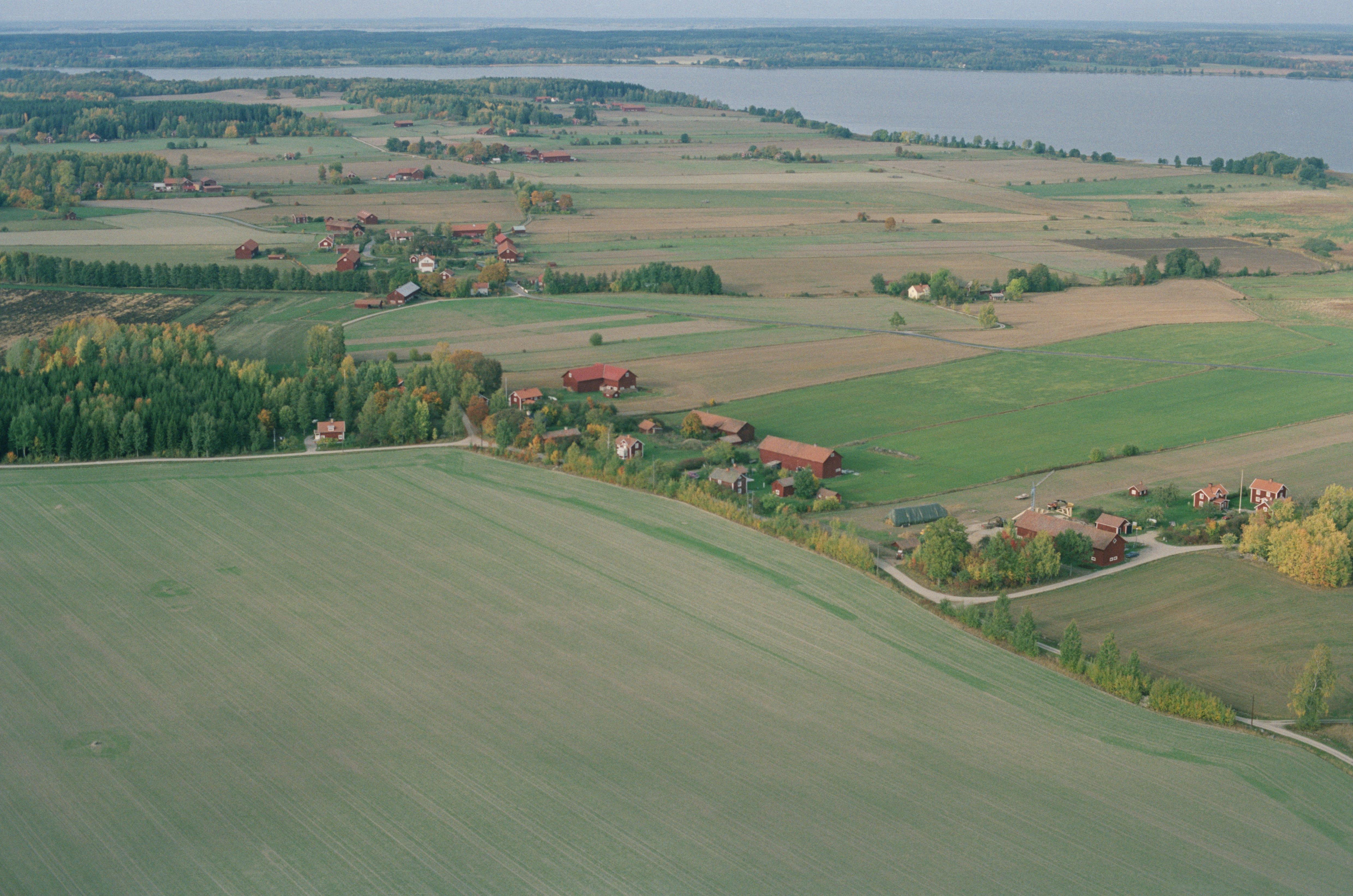 Beskrivning: Hulla by vid sjön Öljaren. I bildens nedre del fyndplats (stenyxor) RAÄnr Österåker 3:1. Gärsån vid bildens mitt. Bilden är tagen mot (väderstreck): N