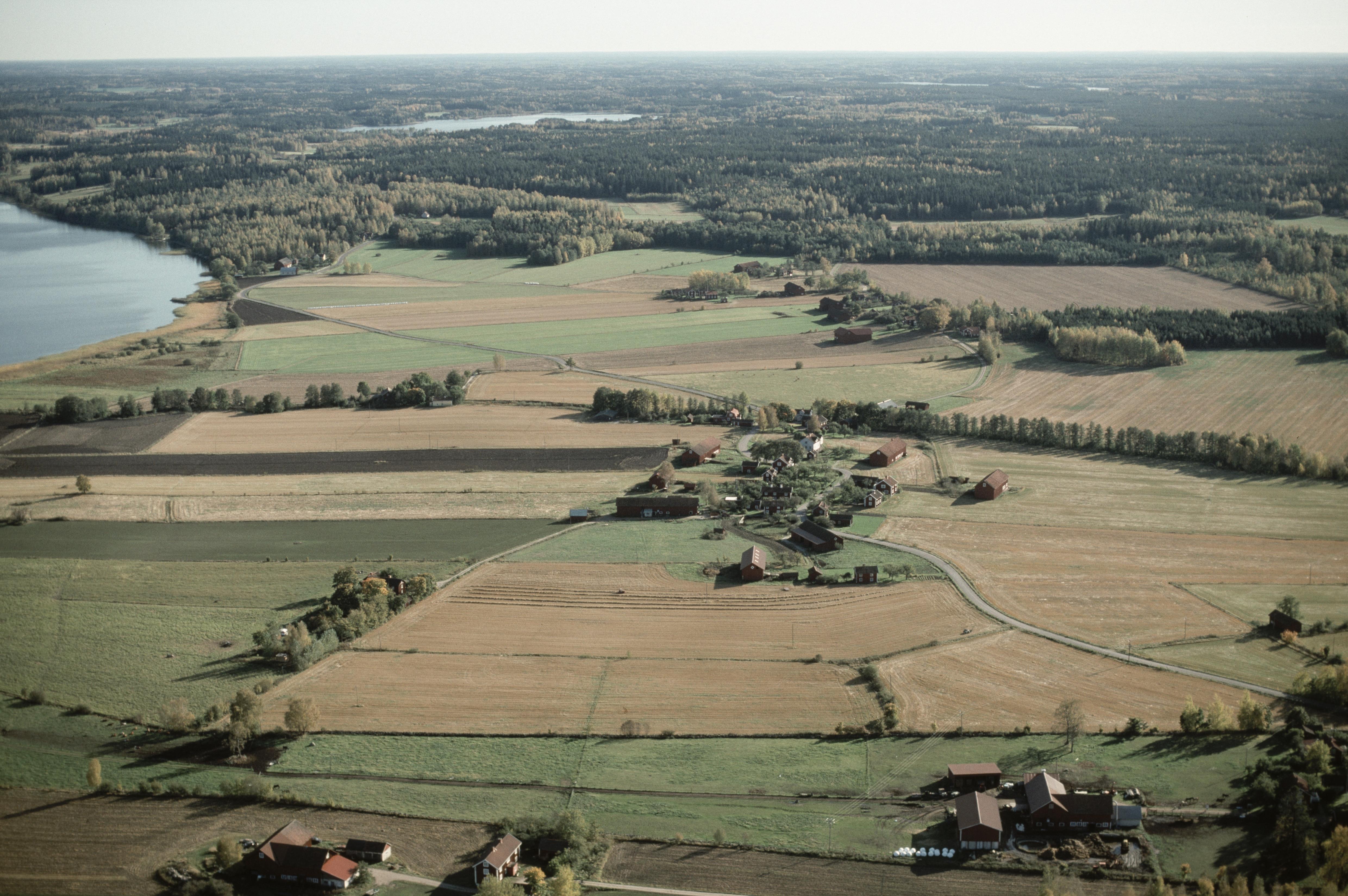 Beskrivning: Hulla by vid sjön Öljaren. Uppe till höger fyndplats (stenyxor) RAÄnr Österåker 3:1. Gärsån vid bildens mitt. Bilden är tagen mot (väderstreck): SSO