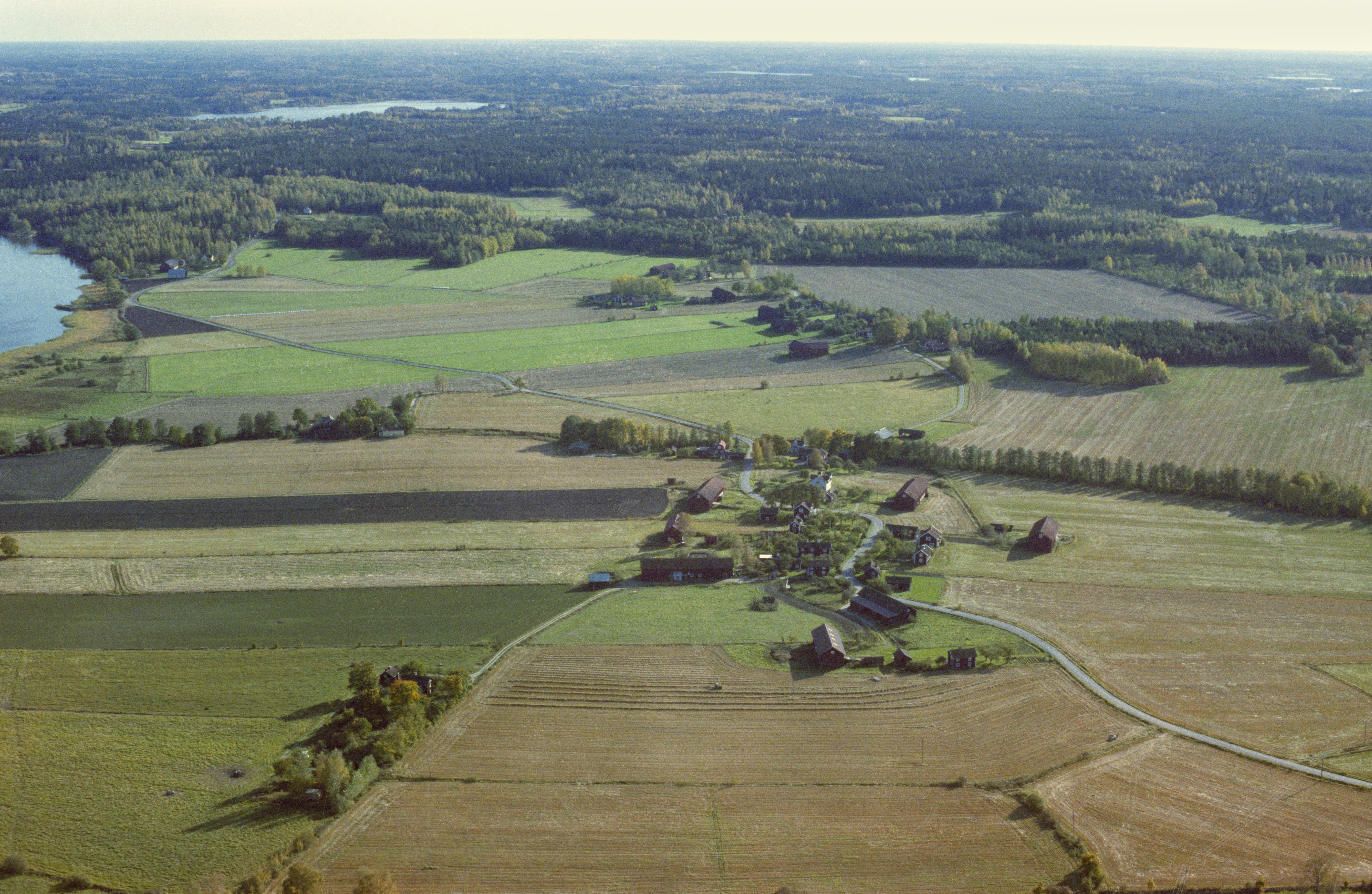 Beskrivning: Hulla by vid sjön Öljaren. Uppe till höger fyndplats (stenyxor) RAÄnr Österåker 3:1. Gärsån vid bildens mitt. Bilden är tagen mot (väderstreck): SSO