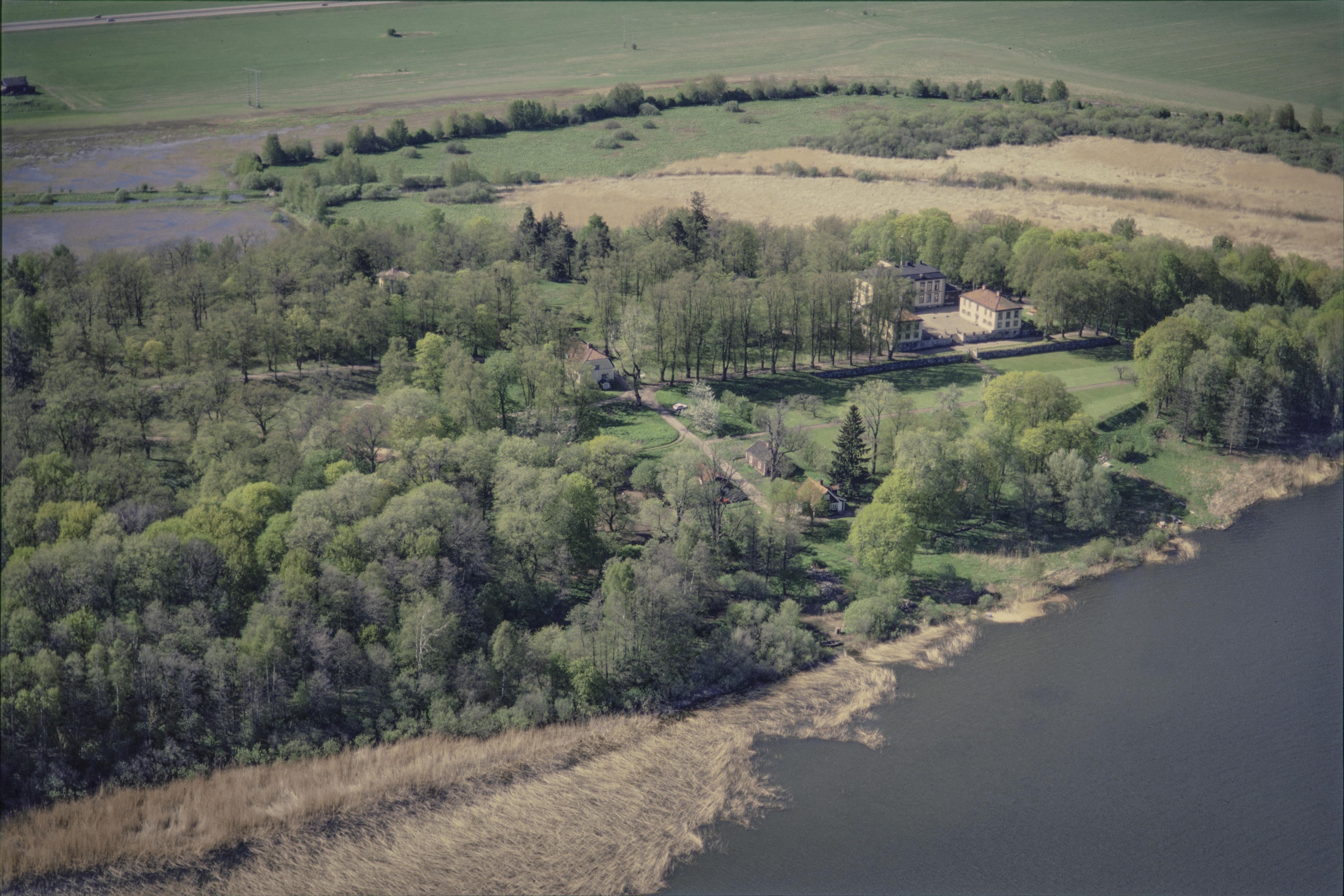 Beskrivning: Vallstanäs herrgård vid sjön Fysingen. Bilden är tagen mot (väderstreck): VNV