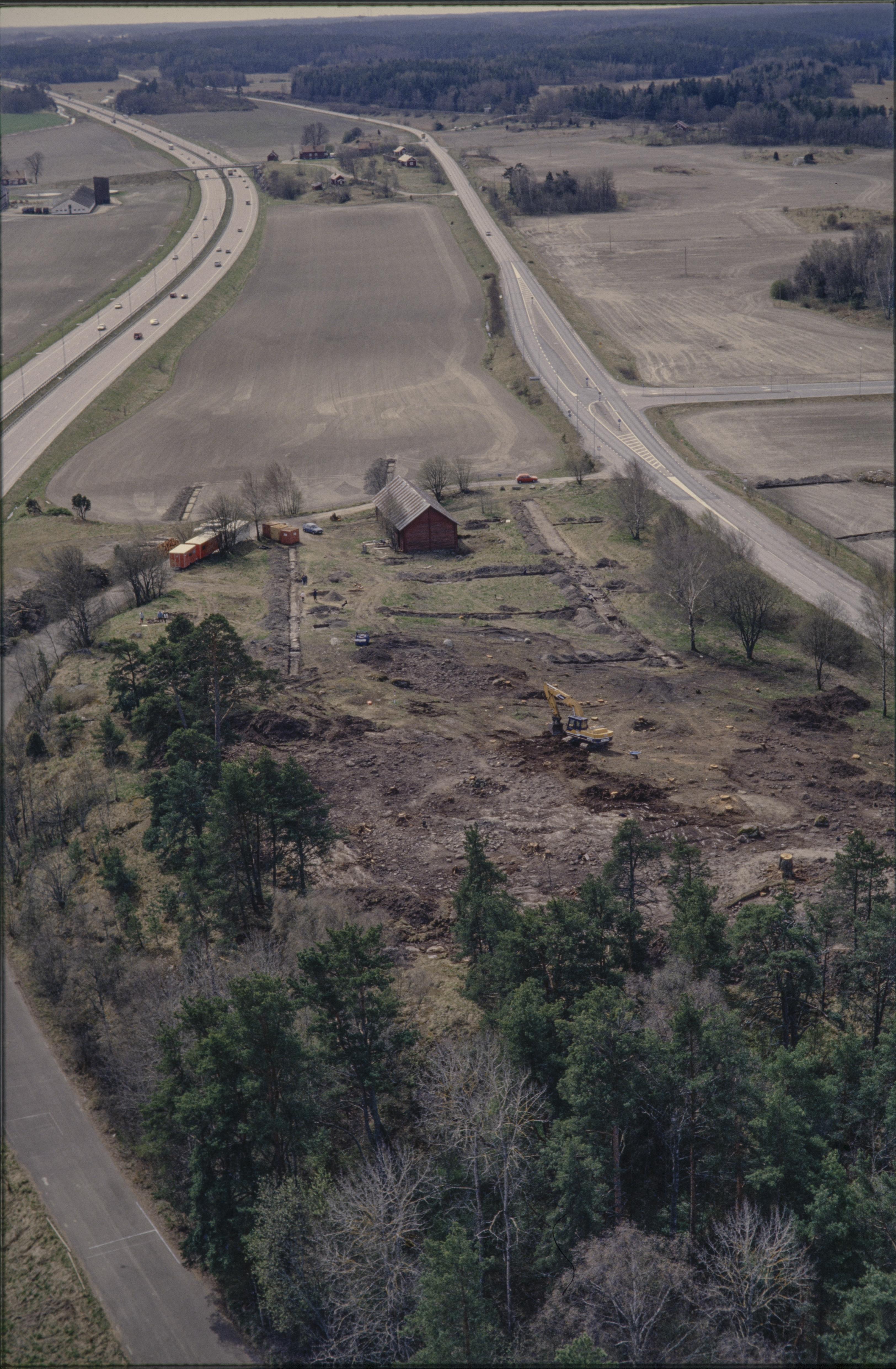Beskrivning: Östra delen av Rosersberg. Arkeologisk undersökning av gravfält Norrsunda 57:1 innan bygge av järnväg (Arlandabanan). Bilden är tagen mot (väderstreck): S