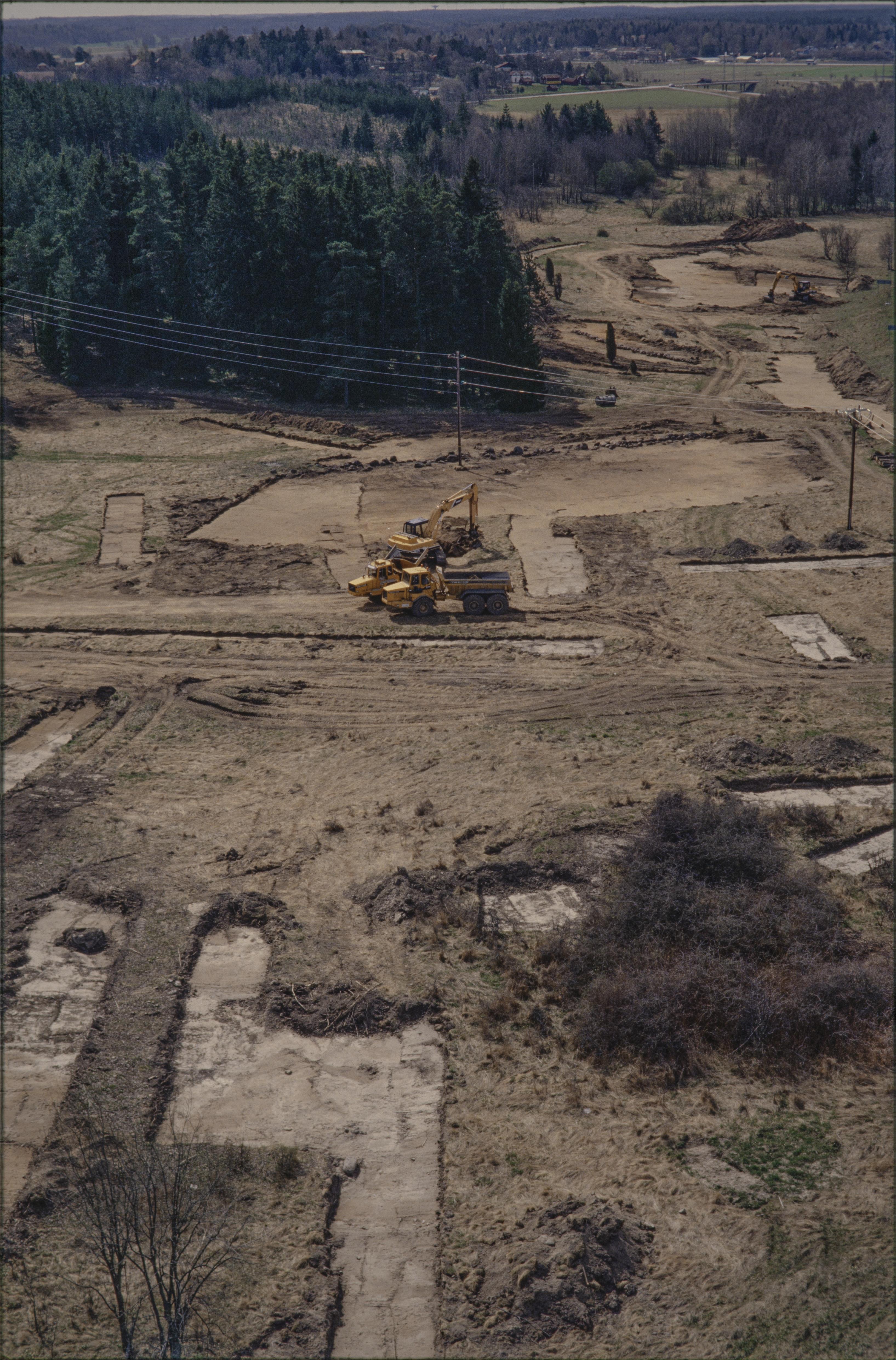 Beskrivning: Arkeologisk undersökning på östsidan av Norslunda golfbana och Märsta trafikplats, innan bygge av järnväg (Arlandabanan). Gravfält RAÄnr Norrsunda 30:1, boplats Norrsunda 186:1, 185:1-2, färdväg Norrsunda 133:1, hägnad Norrsunda 93:1, 105:1 m.fl. Bilden är tagen mot (väderstreck): S