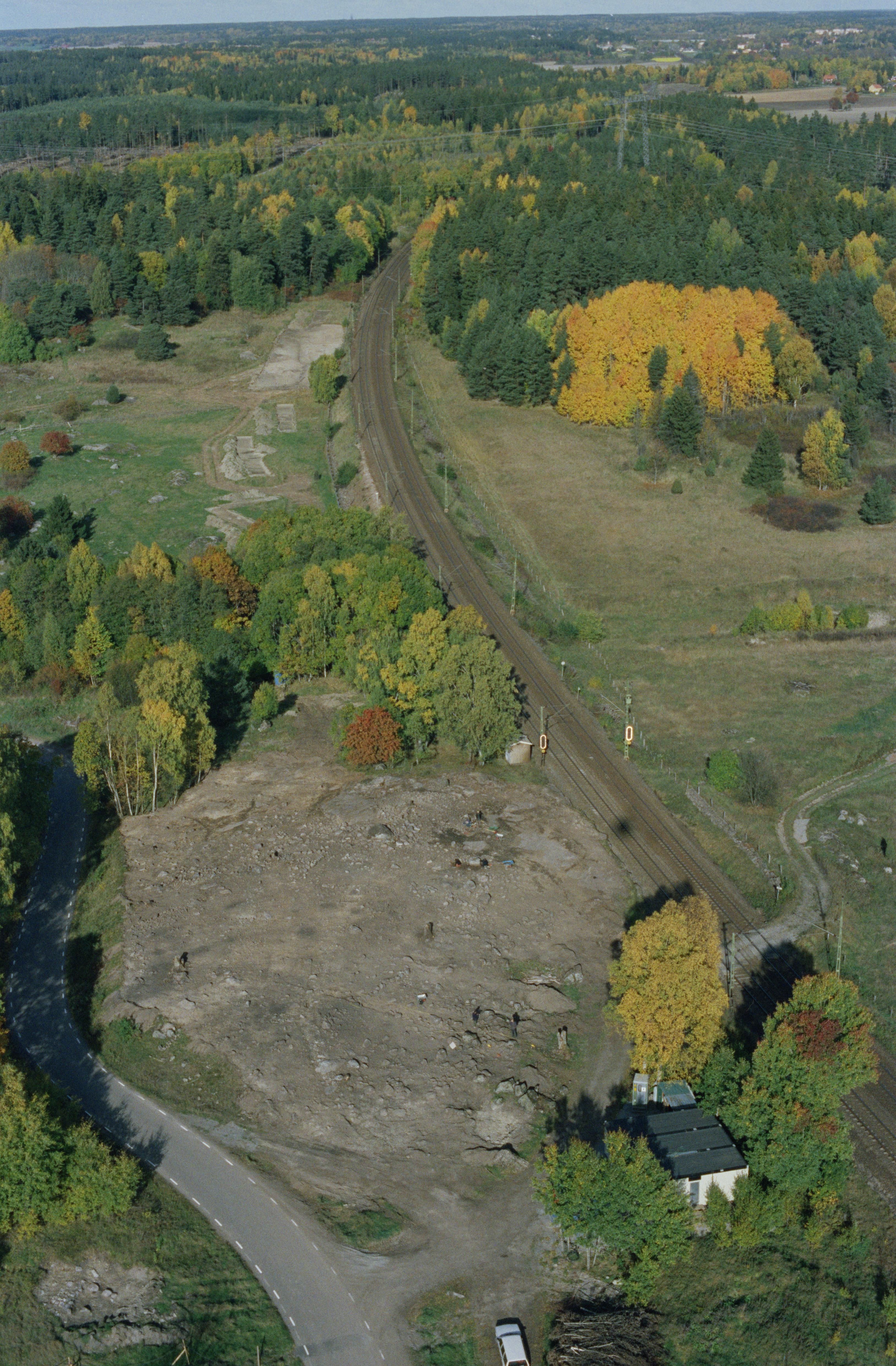 Beskrivning: Arkeologisk undersökning vid Forsby i Forsbyåns dalgång. Husgrund RAÄnr Knivsta 176:1-2 och stensättning Knivsta 189:1. Över bildens mitt gravfält RAÄnr Knivsta 126:1 med hällristningar Knivsta 269:1-9 m.fl. vid Grindstugan. Bilden är tagen mot (väderstreck): NNV