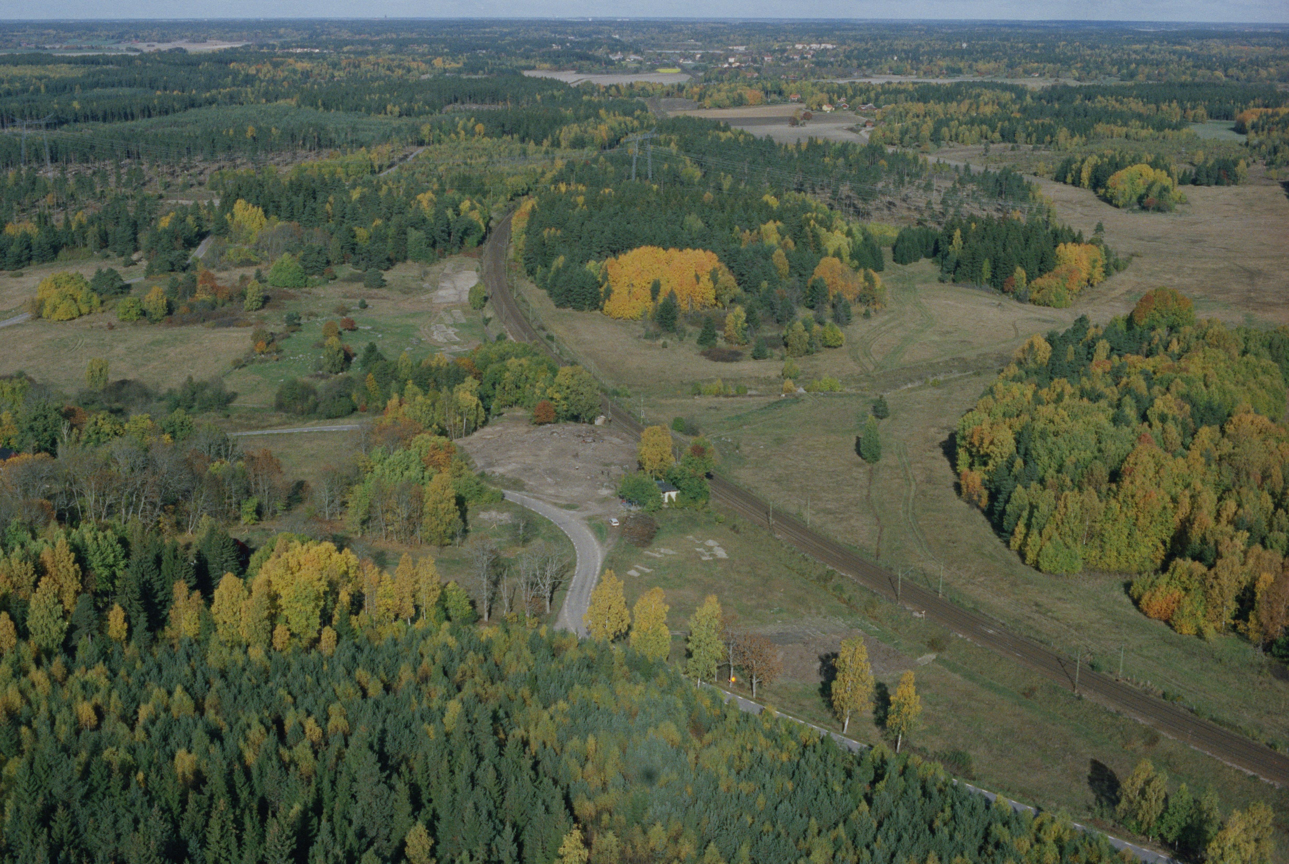 Beskrivning: Arkeologisk undersökning vid Forsby i Forsbyåns dalgång. Vid bildens mitt husgrund RAÄnr Knivsta 176:1-2 och stensättning Knivsta 189:1. Över bildens mitt gravfält RAÄnr Knivsta 126:1 med hällristningar Knivsta 269:1-9 m.fl. vid Grindstugan. Bilden är tagen mot (väderstreck): N