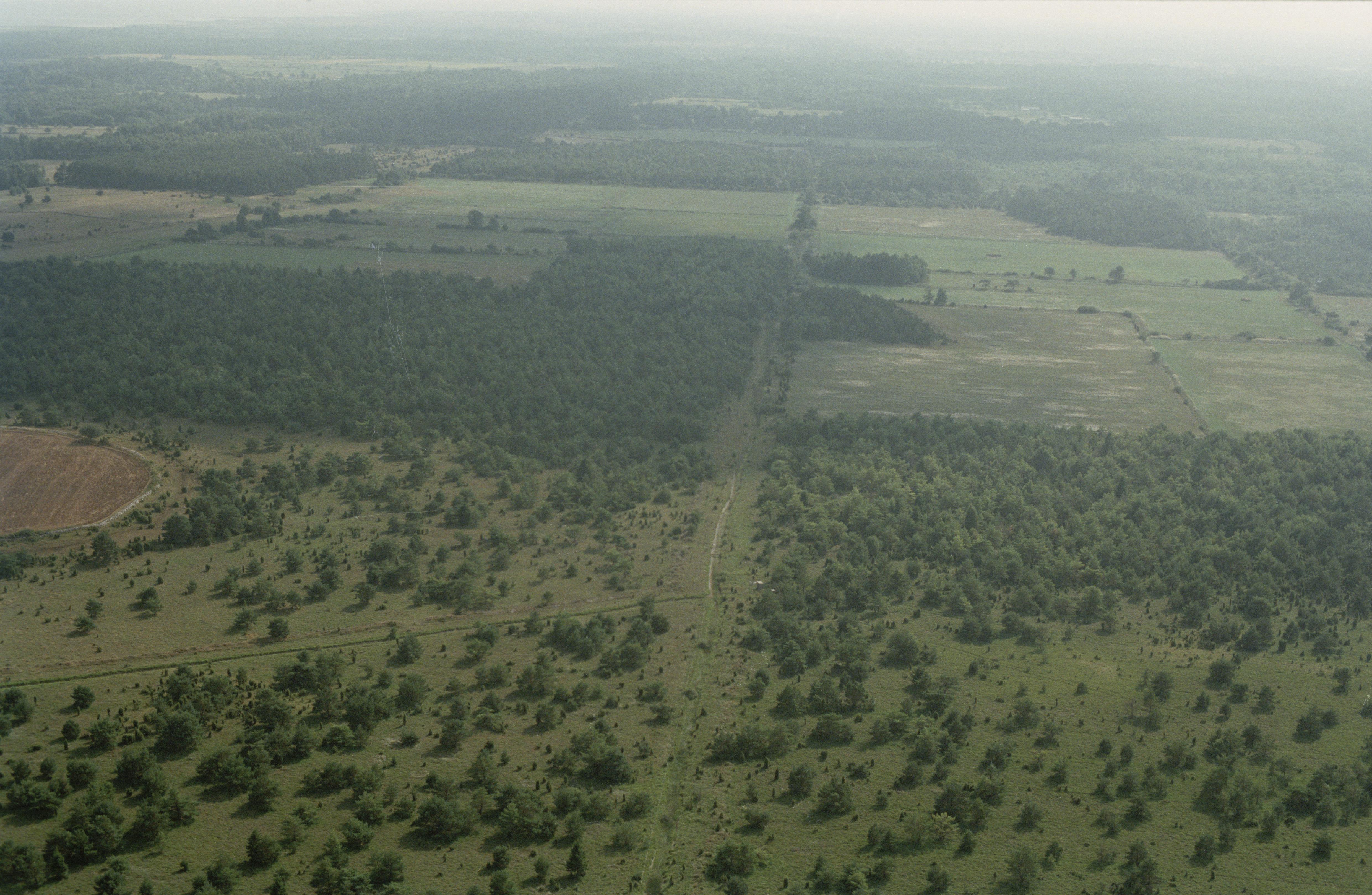 Beskrivning: Skedemosse vid gränsen mellan socknen Köping och Bredsättra (uppe till vänster). Vid bildens mitt fyndplats (yxor) RAÄnr Bredsätra 81:1 och 84:1. Bilden är tagen mot (väderstreck): SSV