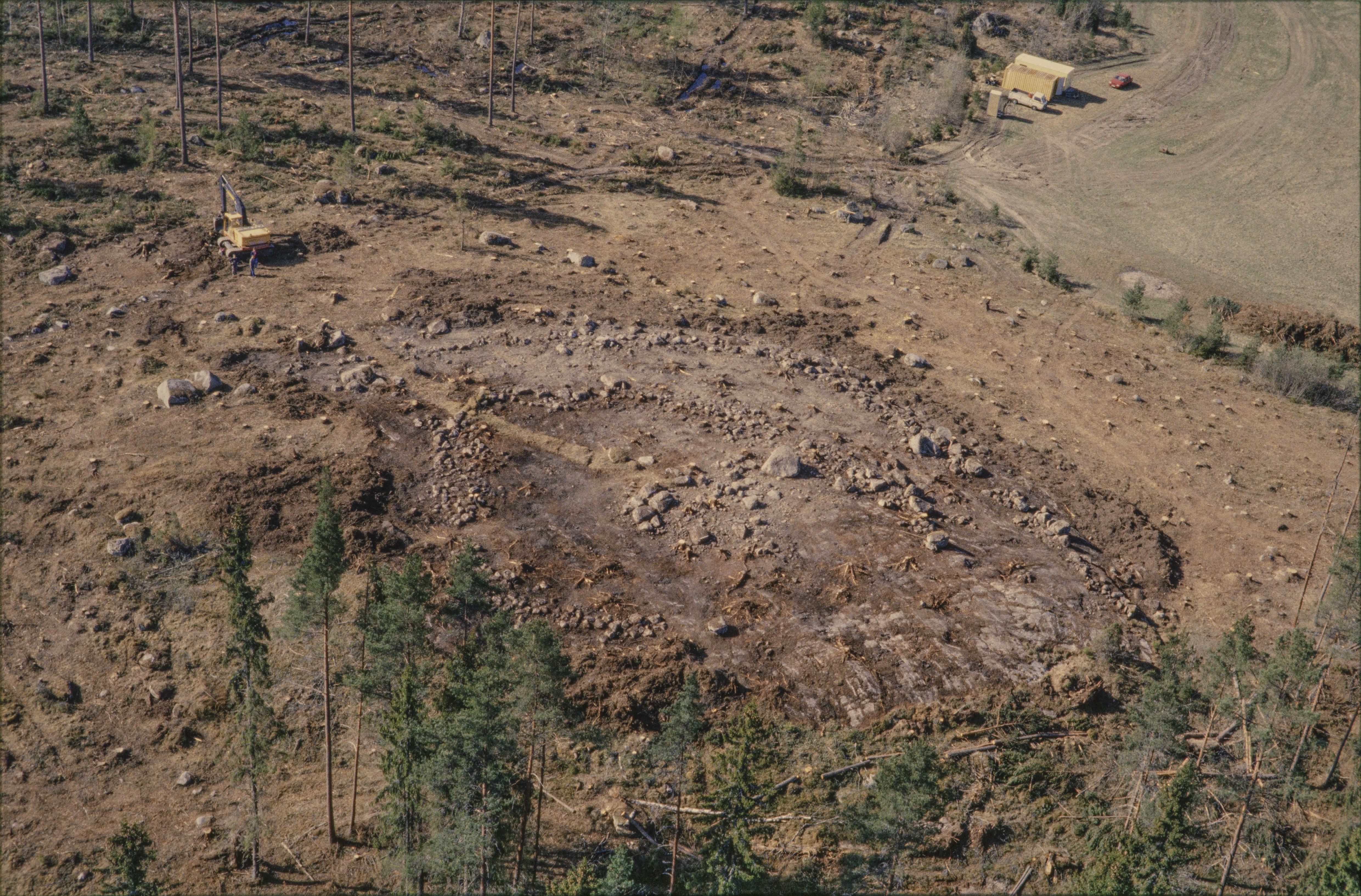 Beskrivning: Arkeologisk undersökning innan bygge av järnväg (Arlandabanan) i Rickebyåns dalgång i områden söder om Svartsjön. Fornborg Odensala 235:1, boplats Odensala 489:1, m.fl. Bilden är tagen mot (väderstreck): SV