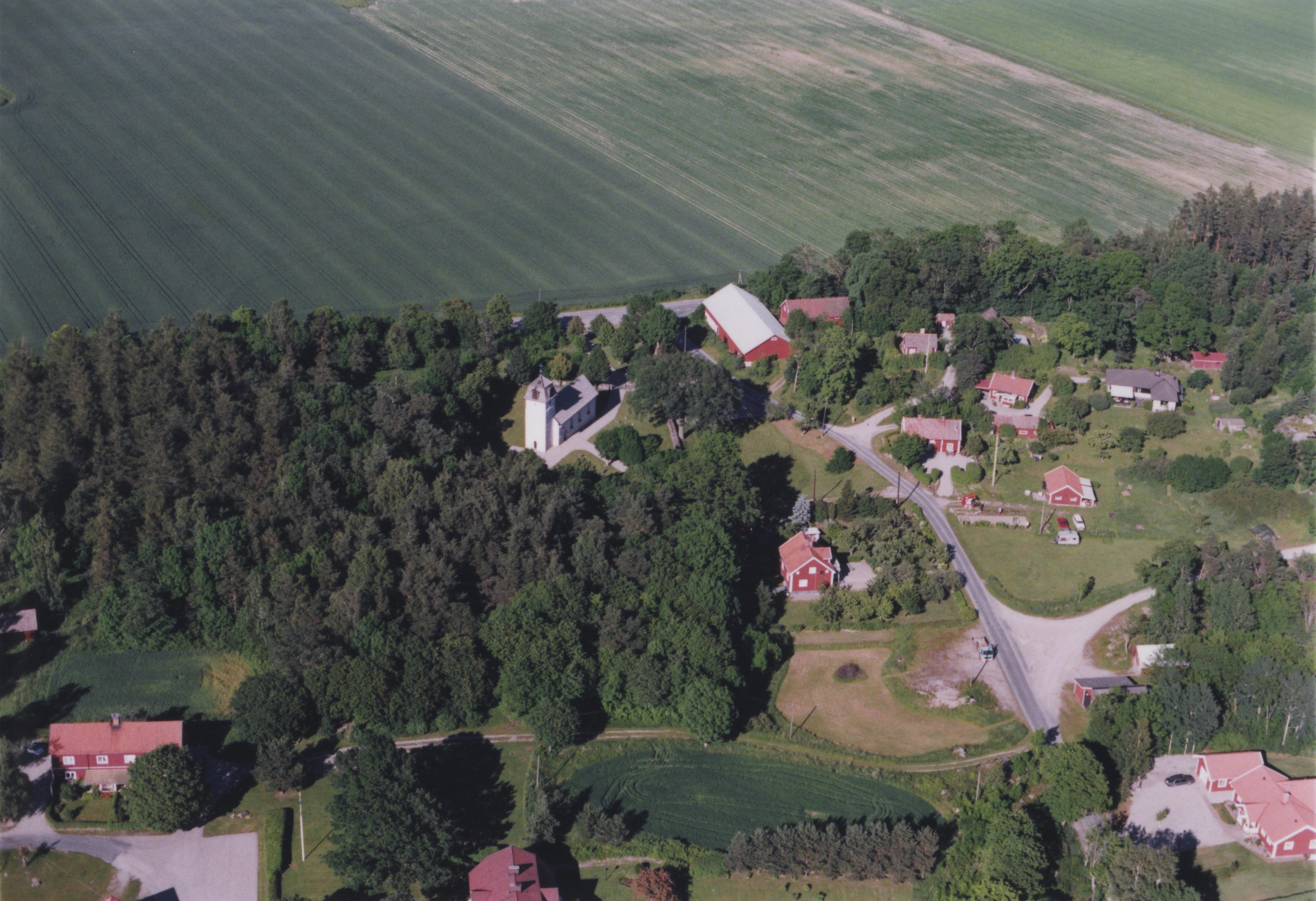 Beskrivning: Hammarby kyrka och kyrkby. Bilden är tagen mot (väderstreck): ONO