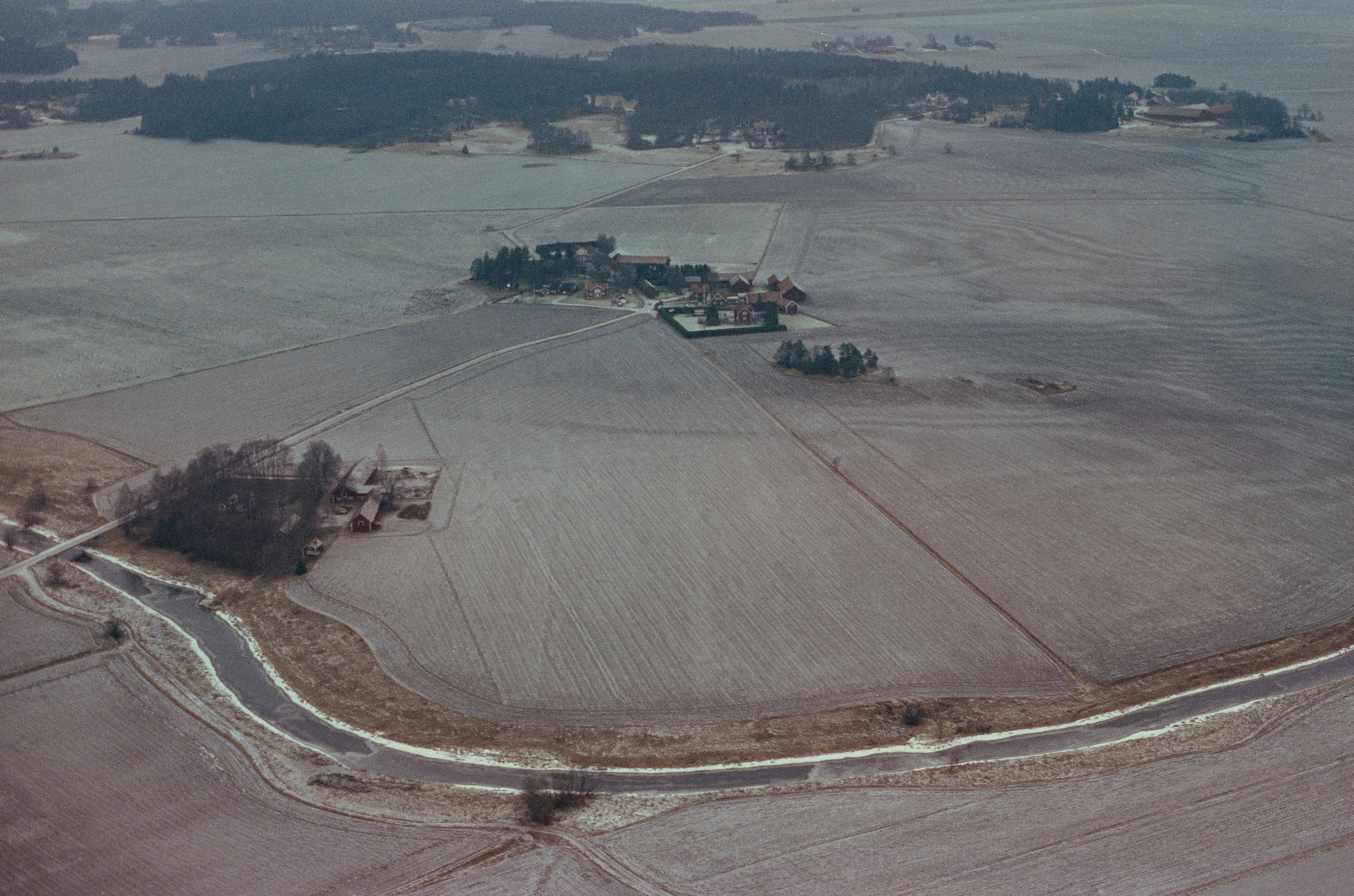 Beskrivning: Edeby gård över bildens mitt. På västsidan av gården stensättning RAÄnr Danmark 96:1. I bildens nedre del Sävjaån som till dels markerar gränsen mellan socknen Danmark (bildens vänstra och övre del) och Lagga (nere till höger). I bildens övre del gården Linnés Hammarby. Bilden är tagen mot (väderstreck): N