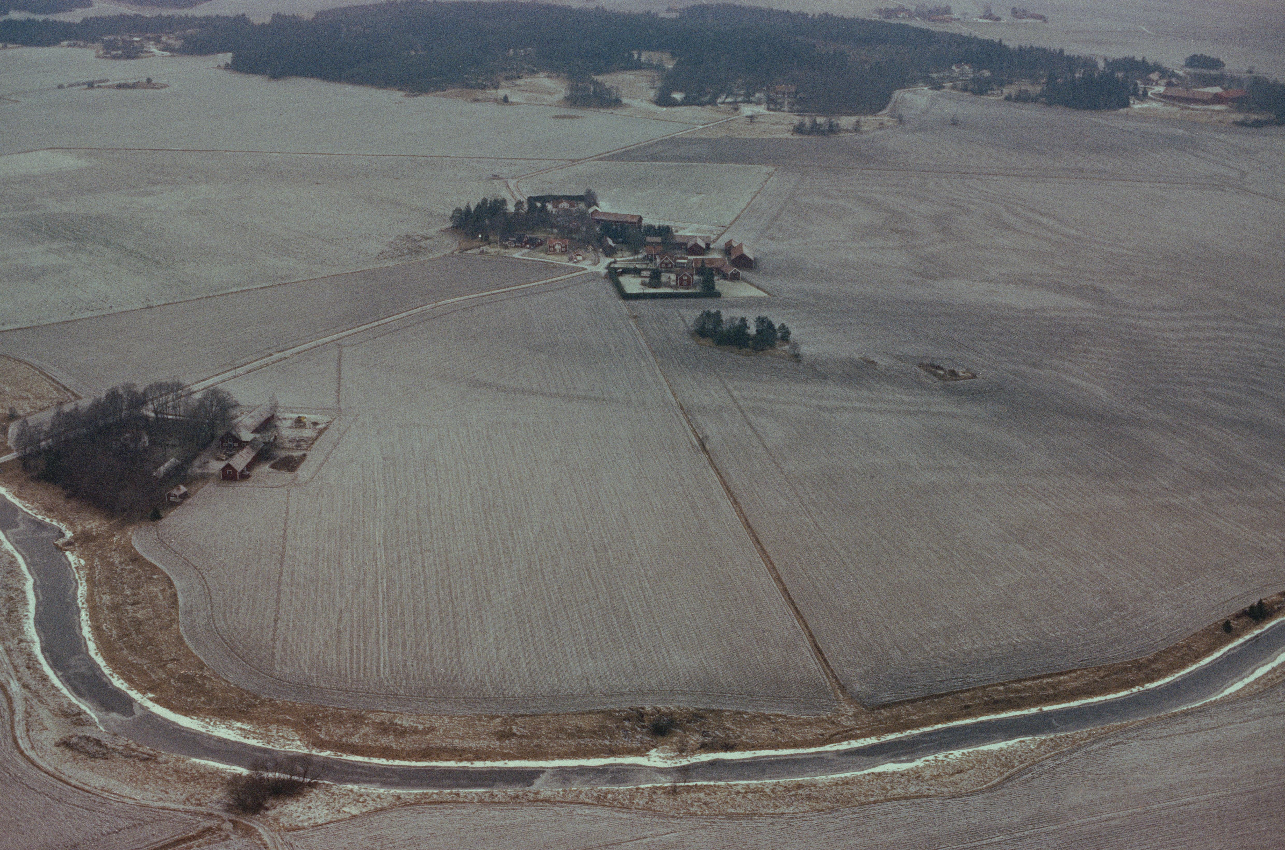 Beskrivning: Edeby gård över bildens mitt. På västsidan av gården stensättning RAÄnr Danmark 96:1. I bildens nedre del Sävjaån som till dels markerar gränsen mellan socknen Danmark (bildens vänstra och övre del) och Lagga (nere till höger). I bildens övre del gården Linnés Hammarby. Bilden är tagen mot (väderstreck): N