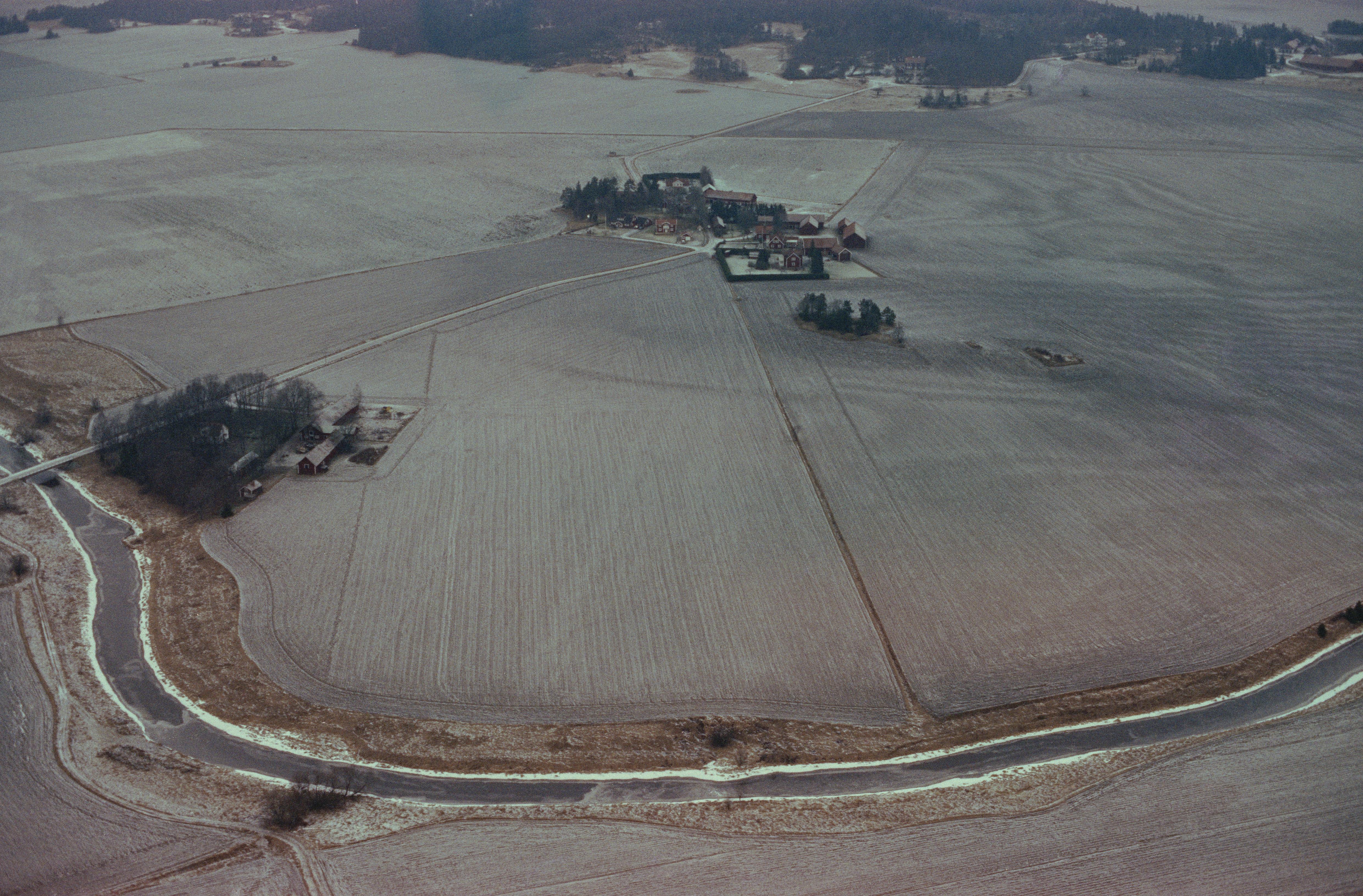 Beskrivning: Edeby gård över bildens mitt. På västsidan av gården stensättning RAÄnr Danmark 96:1. I bildens nedre del Sävjaån som till dels markerar gränsen mellan socknen Danmark (bildens vänstra och övre del) och Lagga (nere till höger). I bildens övre del gården Linnés Hammarby. Bilden är tagen mot (väderstreck): N