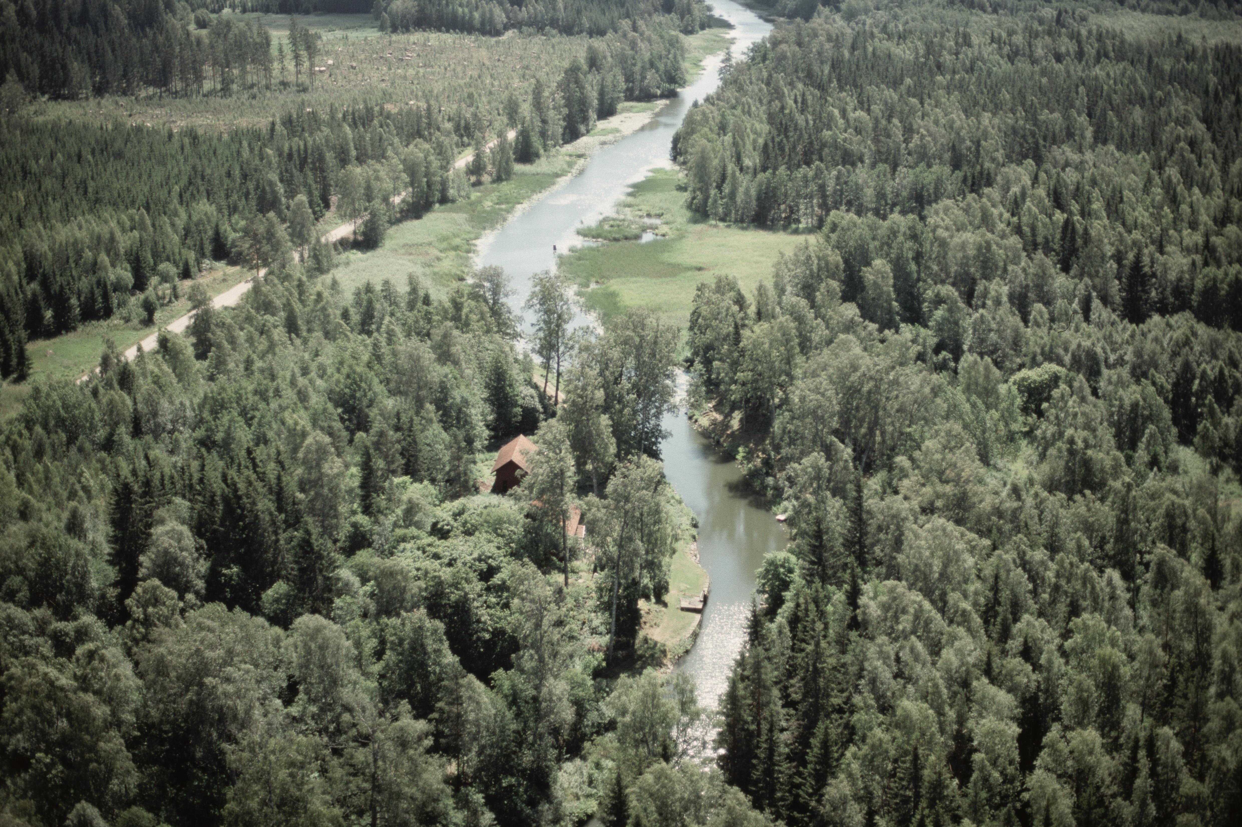 Beskrivning: Hjälmare kanal vid Skogstorp i södra delen av Kvarnsjön. Bilden är tagen mot (väderstreck): SSO