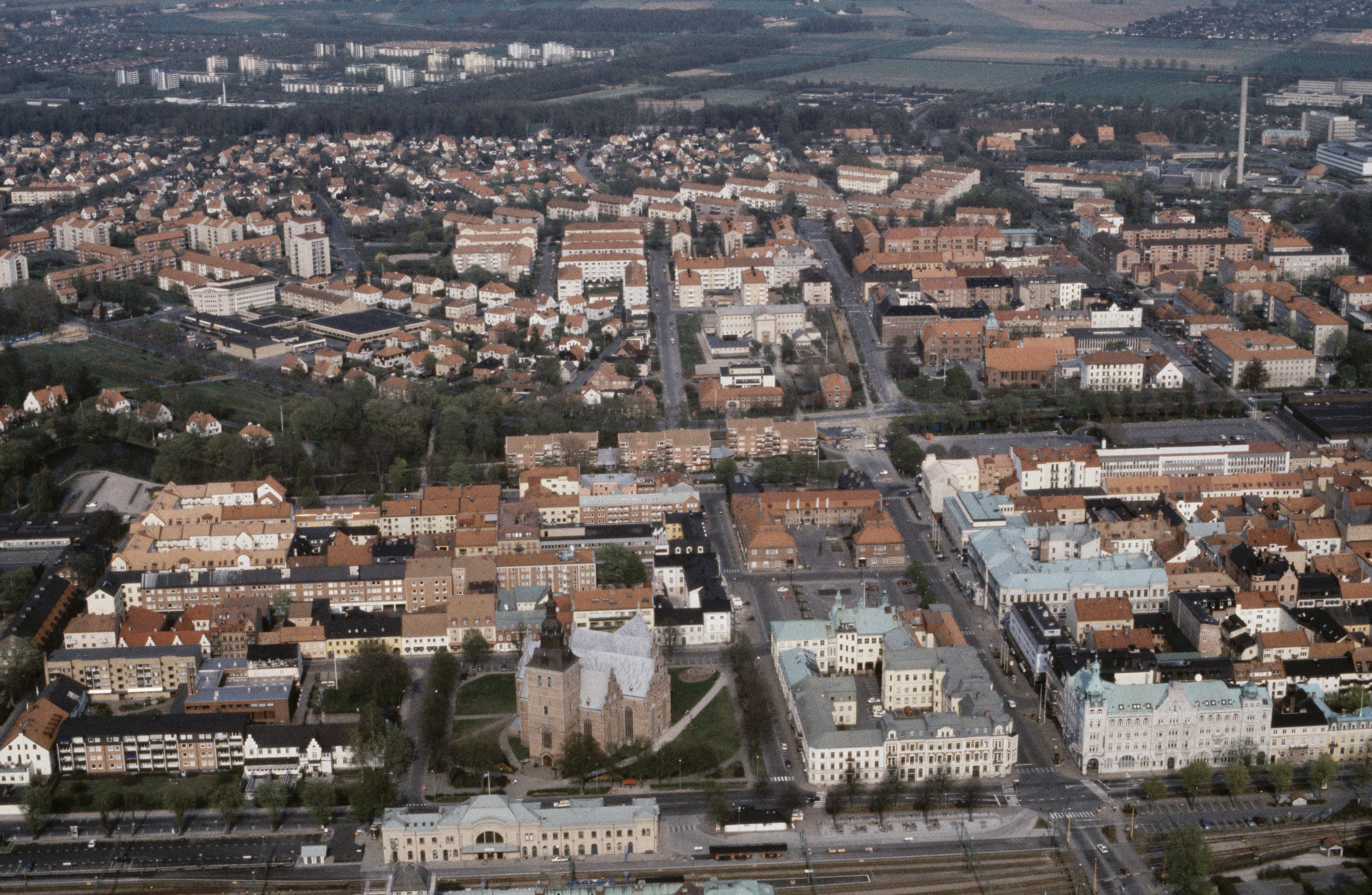 Beskrivning: Kristianstads stad. Heliga Trefaldighetskyrka vid bildens mitt. Bilden är tagen mot (väderstreck): ONO
