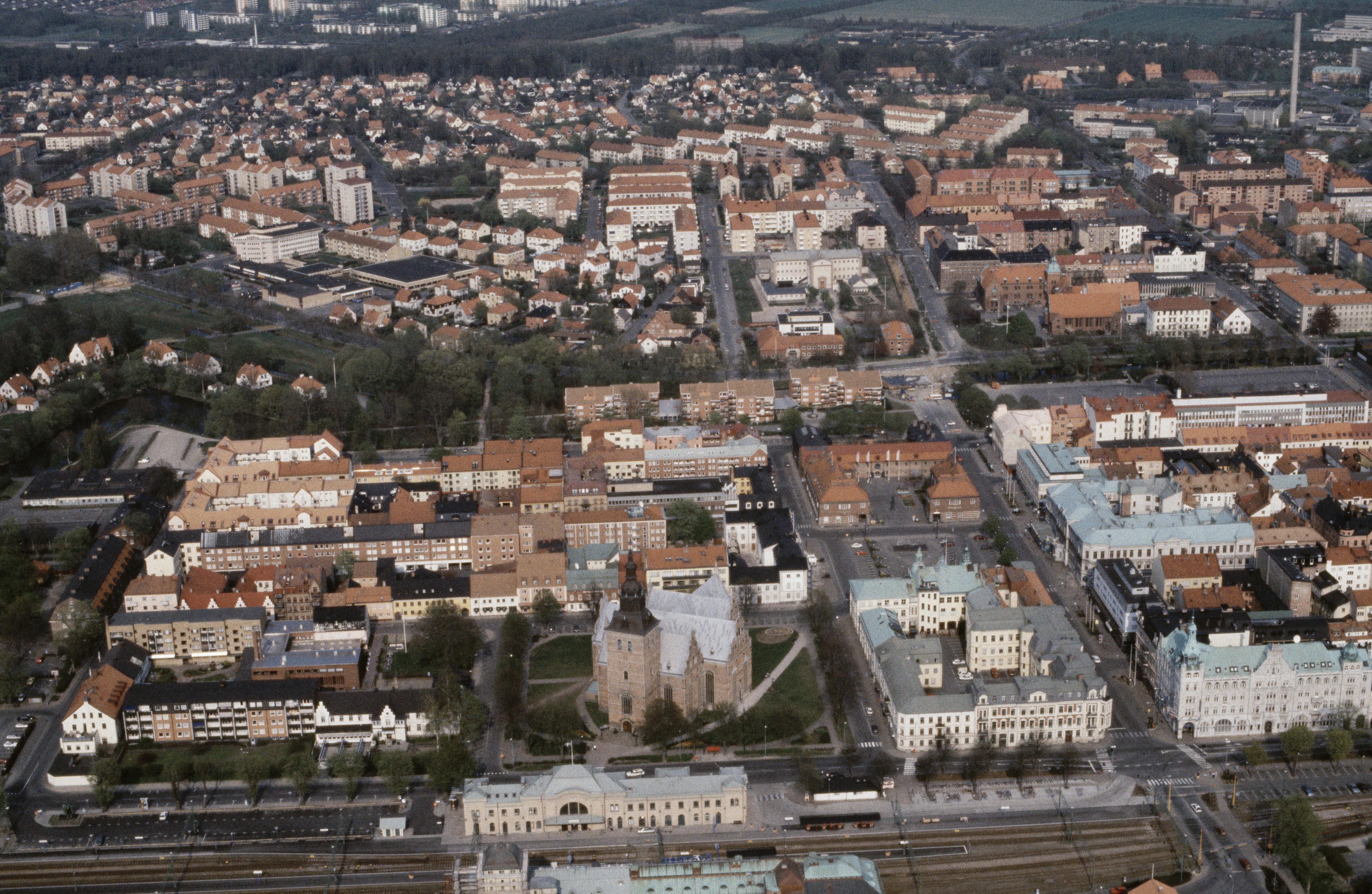 Beskrivning: Kristianstads stad. Heliga Trefaldighetskyrka vid bildens mitt. Bilden är tagen mot (väderstreck): ONO