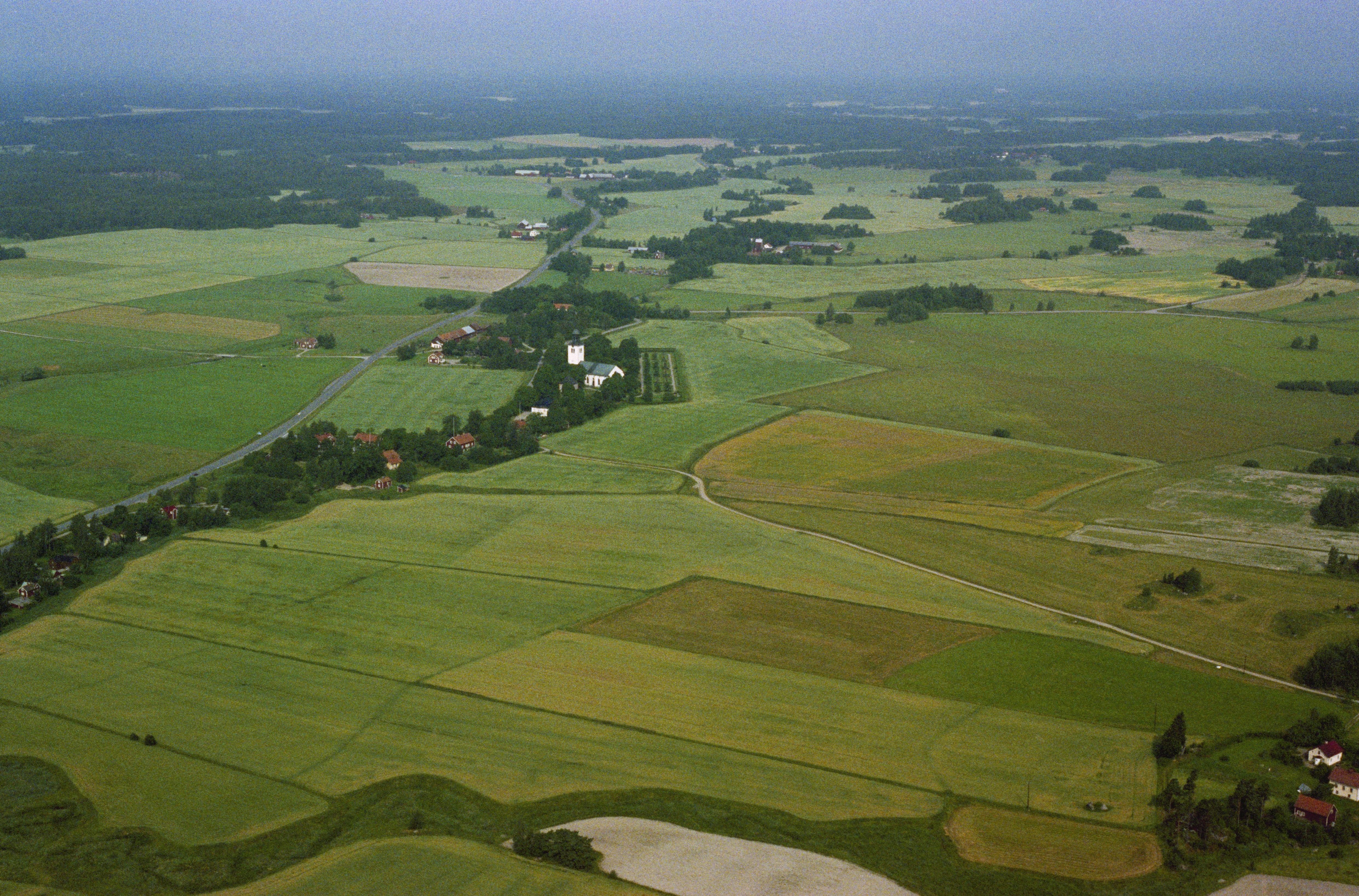 Beskrivning: Över bildens mitt Fellingsbro kyrka och kyrkby i Ässingåns dalgång. På sydost sidan av kyrkan kastalruinen RAÄnr Fellingsbro 231:1. Ekebyhammars gård i bildens övre del. Bilden är tagen mot (väderstreck): VNV