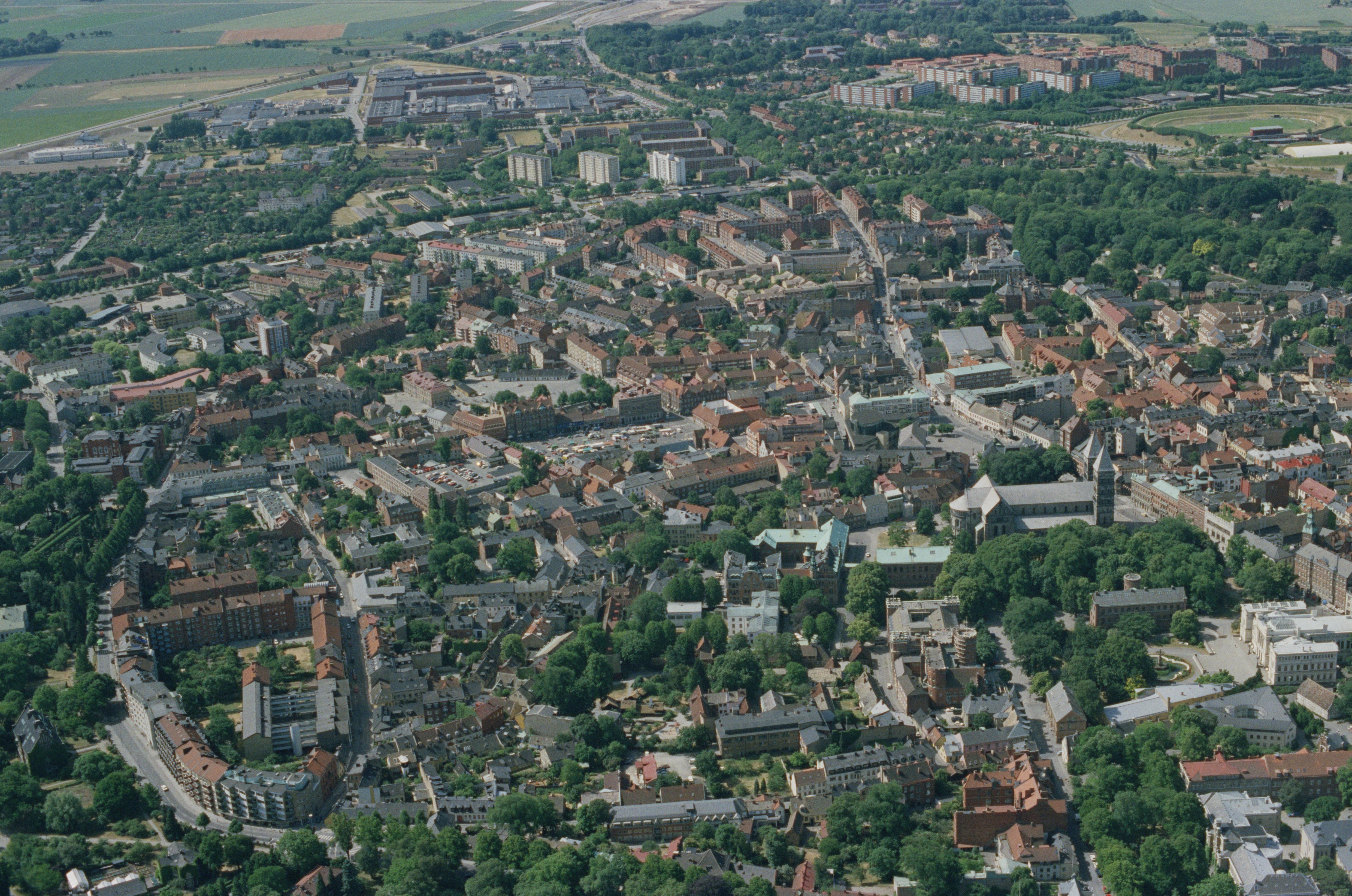 Beskrivning: Anmärkning (övrig): Riksintresse-nr/namn: M87 - Lund. Socken: Lund. Motivering: Stiftsstad och universitetsstad, en av landets äldsta och mest betydande medeltidsstäder, som speglar utvecklingen från kyrklig metropol till universitetsstad med expansiv utveckling under det sena 1800-talet och 1900-talet. (Skolstad). - Uttryck för riksintresset: Det oregelbundna medeltida stadsplanemönstret med tillskott från senare tider, tomtstruktur, platsbildningar. Domkyrkan, medeltida hus, stadsvallen och andra lämningar från medeltiden. Olika byggnader för universitetet och det intellektuella livet. Stadssiluetten, siktlinjer ut från staden och in mot Lund från det omgivande slättlandskapet. Bebyggelsens skala, volym och (…) Texten i detta fält har förkortats vid migrering till e-arkivet. Se filbilagan extra.xml för fullständig information under note_archivist. Beskrivning: Lunds stad, Lunds domkyrka. Bilden är tagen mot (väderstreck): SV Fotosyfte: Flygbildsdokumentation
