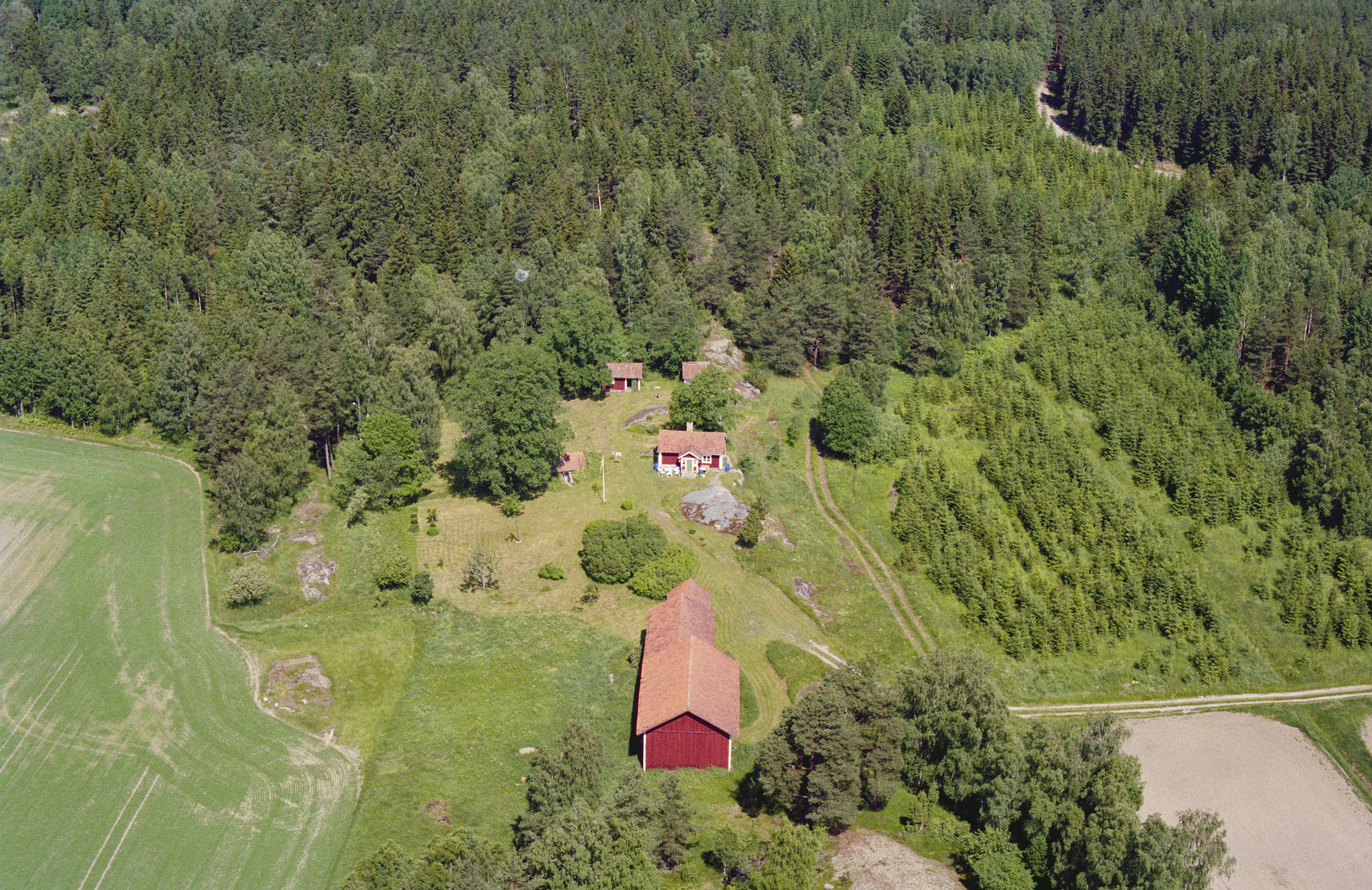 Beskrivning: Torpet Skystatorp. Uppe till höger område med husgrund RAÄnr Bro 209:1. Bilden är tagen mot (väderstreck): NNV