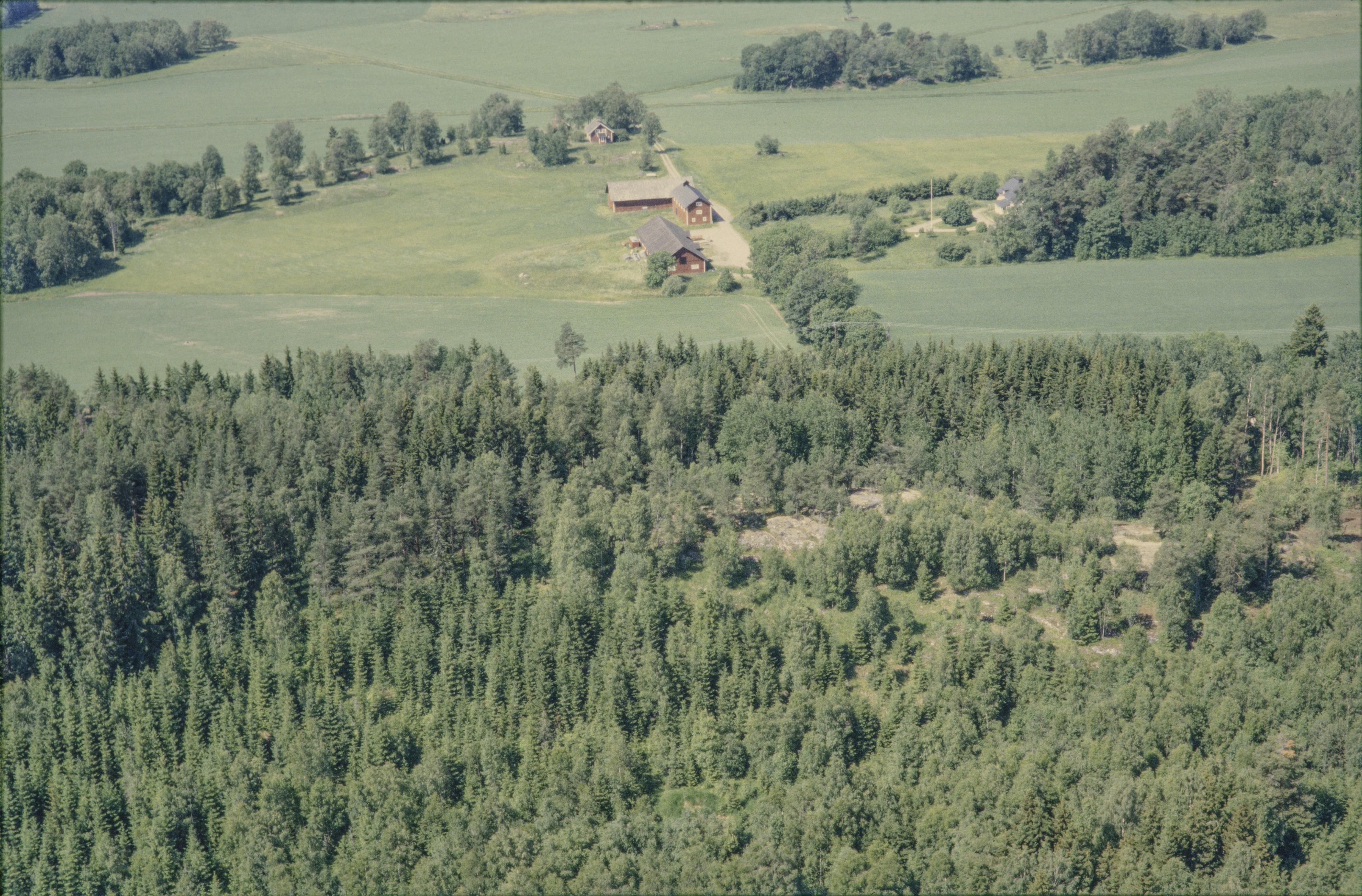 Beskrivning: I bildens nedre del fornborg RAÄnr Bro 86:1 vid Sätra gård. Bilden är tagen mot (väderstreck): V