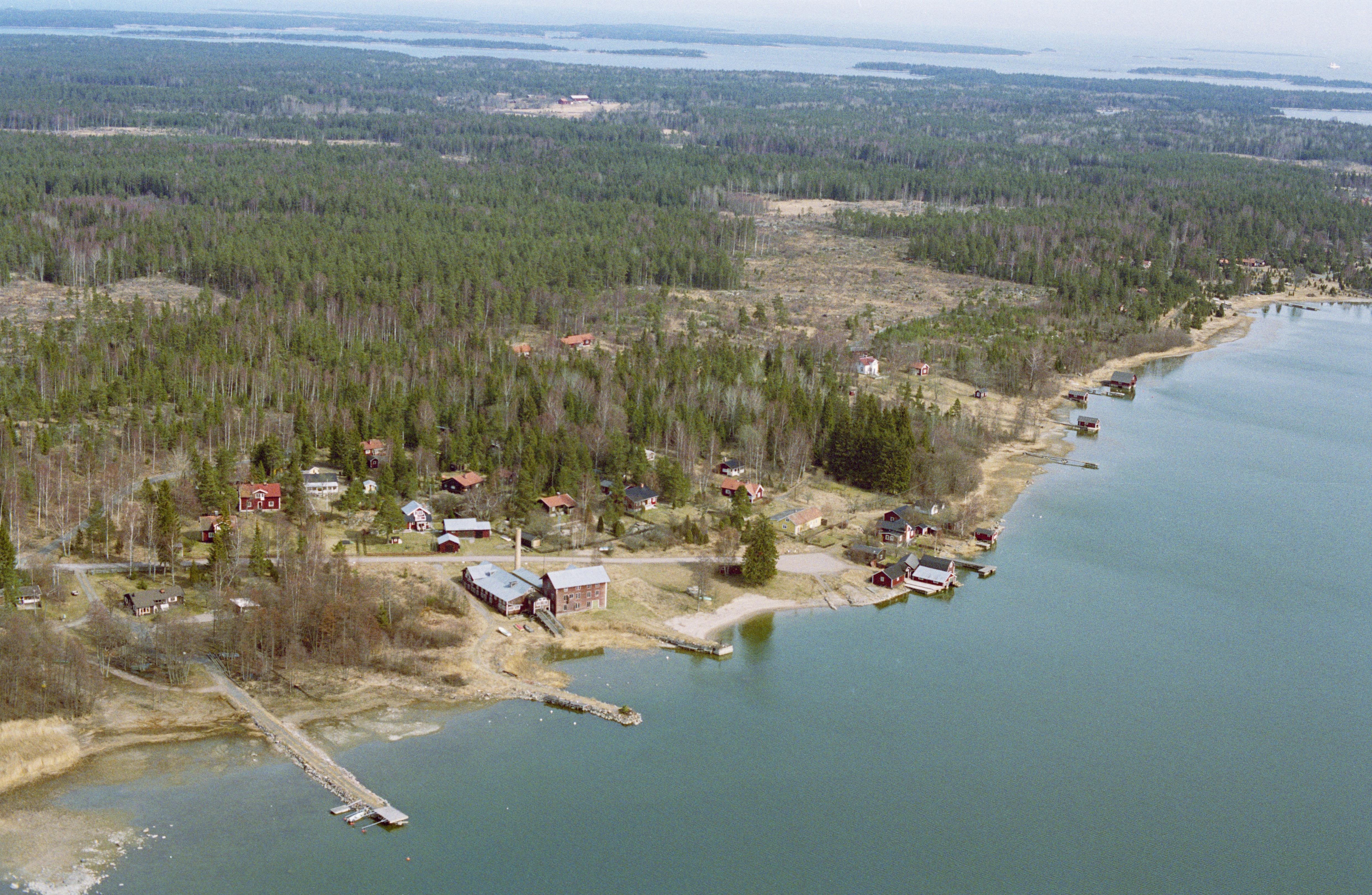 Beskrivning: Söderön vid Raggaröfjärden. Vid bildens mitt Älvsnäs by och hamn. Bilden är tagen mot (väderstreck): Ö
