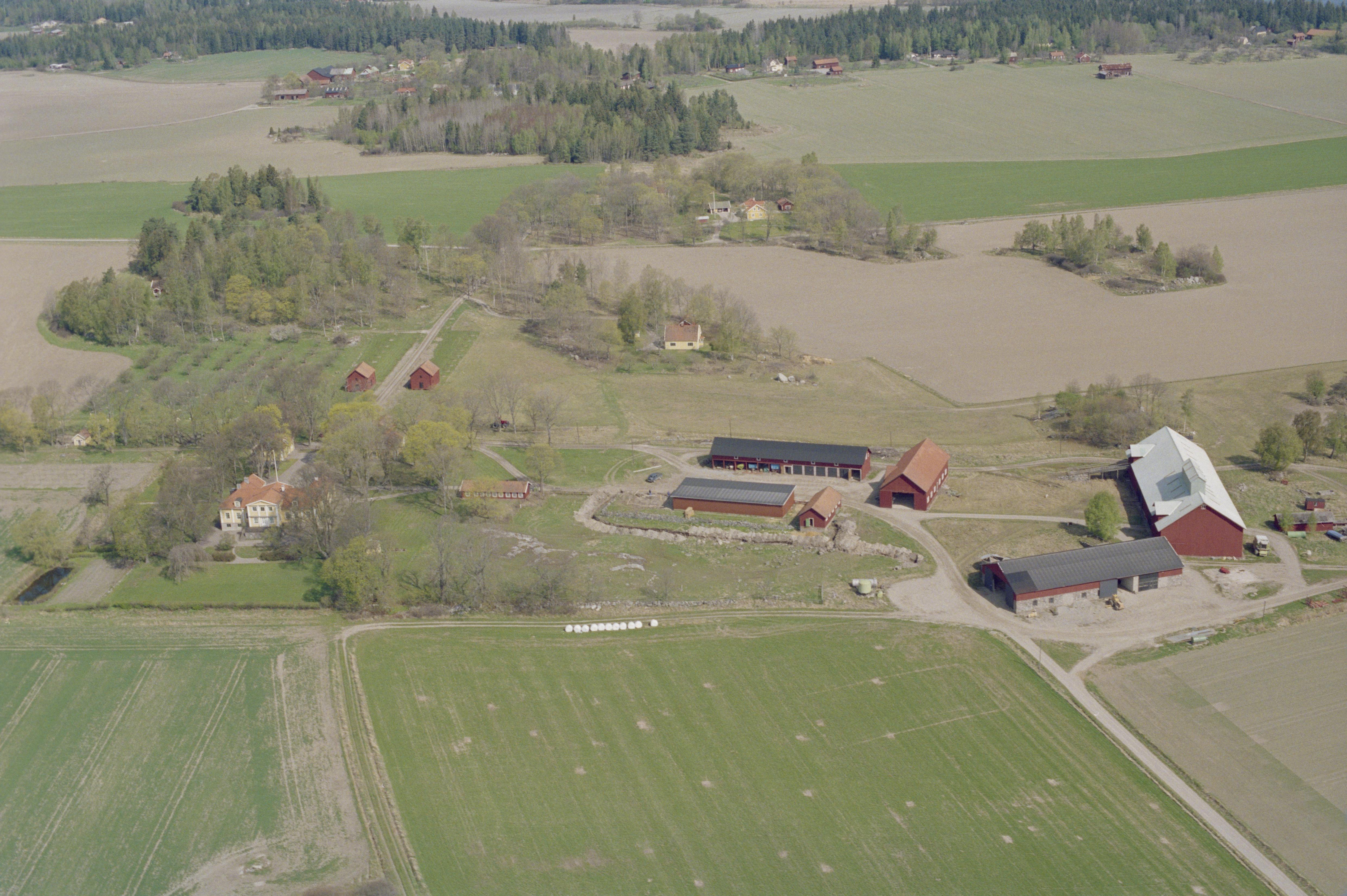 Beskrivning: Hacksta gård / herrgård RAÄnr Enköpings-Näs 47:1. I bildens övre kant Svinnegarnsviken i Mälaren. Bilden är tagen mot (väderstreck): NNV