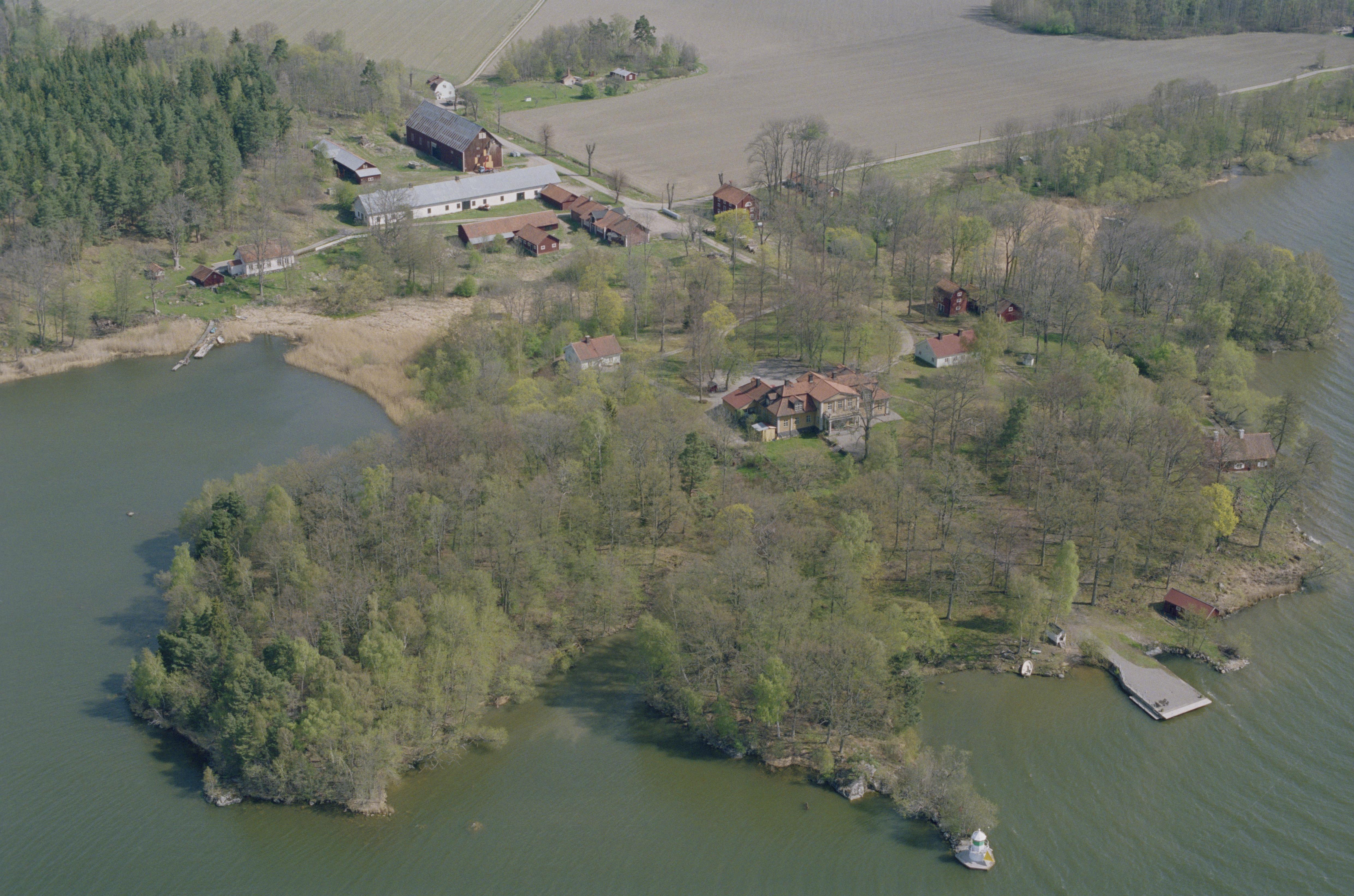 Beskrivning: Nybyholms gård / herrgård RAÄnr Enköpings-Näs 41:1 vid Hjulstafjärden i Mälaren. Bilden är tagen mot (väderstreck): NO