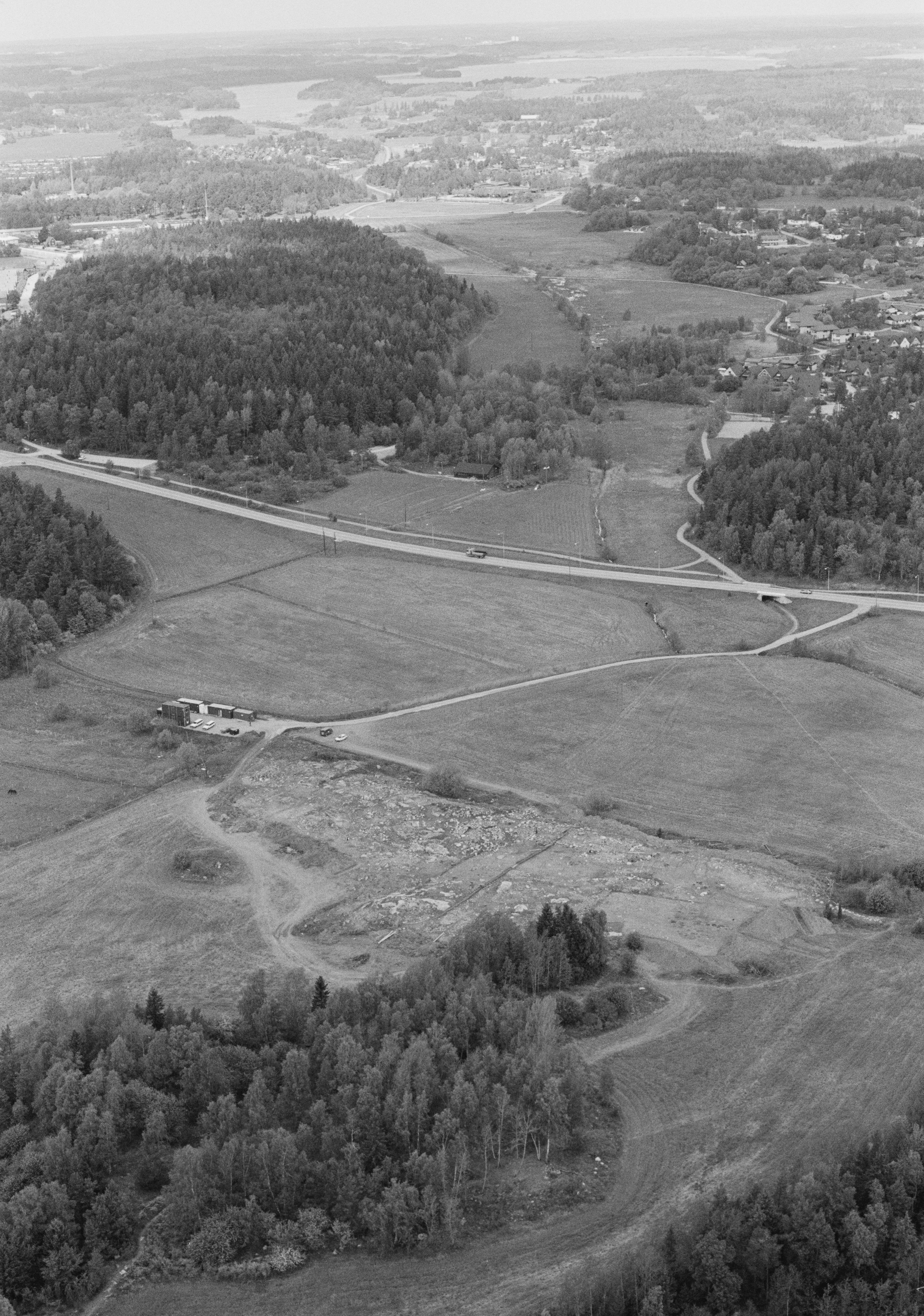 Beskrivning: Beskrivning: Arkeologisk undersökning innan bygging av bostäder. Gravfält och boplatsområde RAÄnr Fresta 147:1. Bilden är tagen mot (väderstreck): NNV Fotosyfte: Flygbildsdokumentation