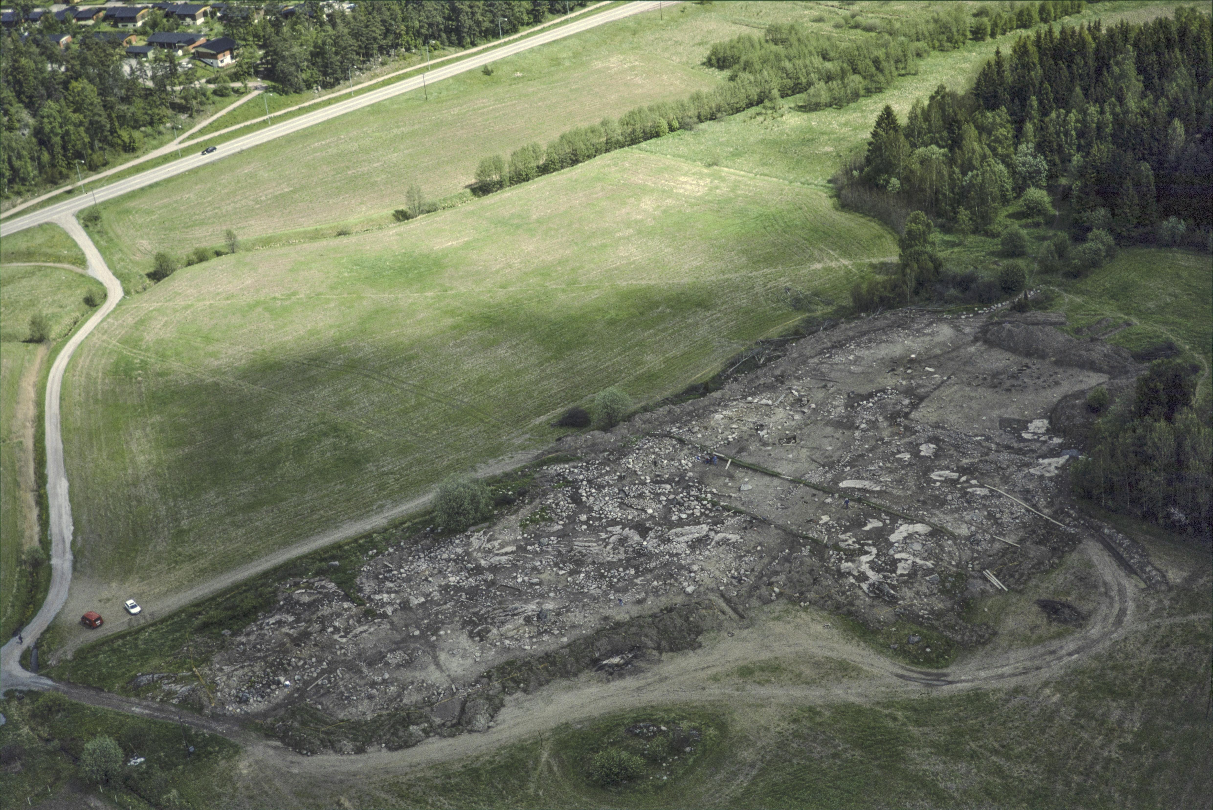 Beskrivning: Arkeologisk undersökning innan bygging av bostäder. Gravfält och boplatsområde RAÄnr Fresta 147:1. Bilden är tagen mot (väderstreck): NO