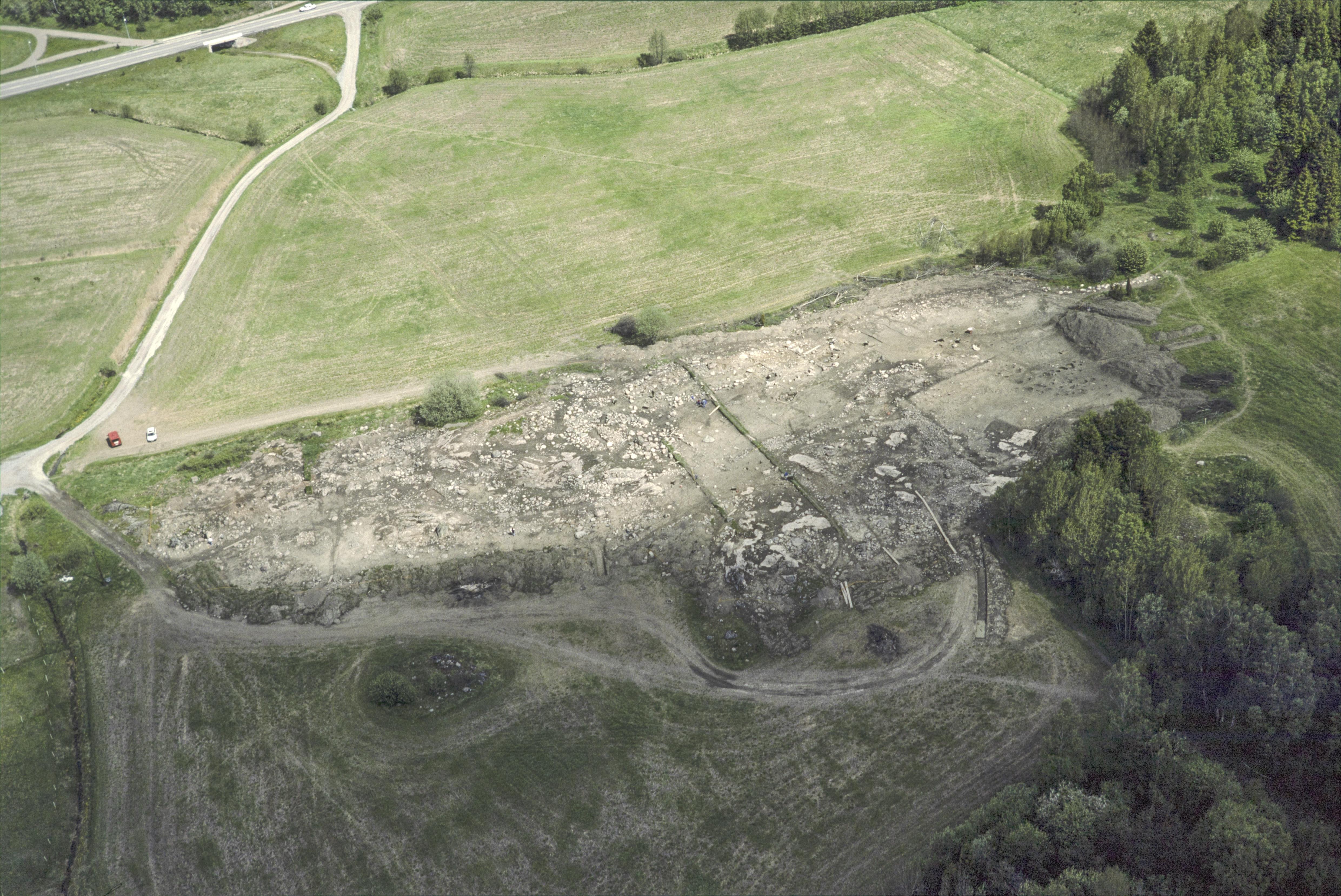 Beskrivning: Arkeologisk undersökning innan bygging av bostäder. Gravfält och boplatsområde RAÄnr Fresta 147:1. Bilden är tagen mot (väderstreck): NNO