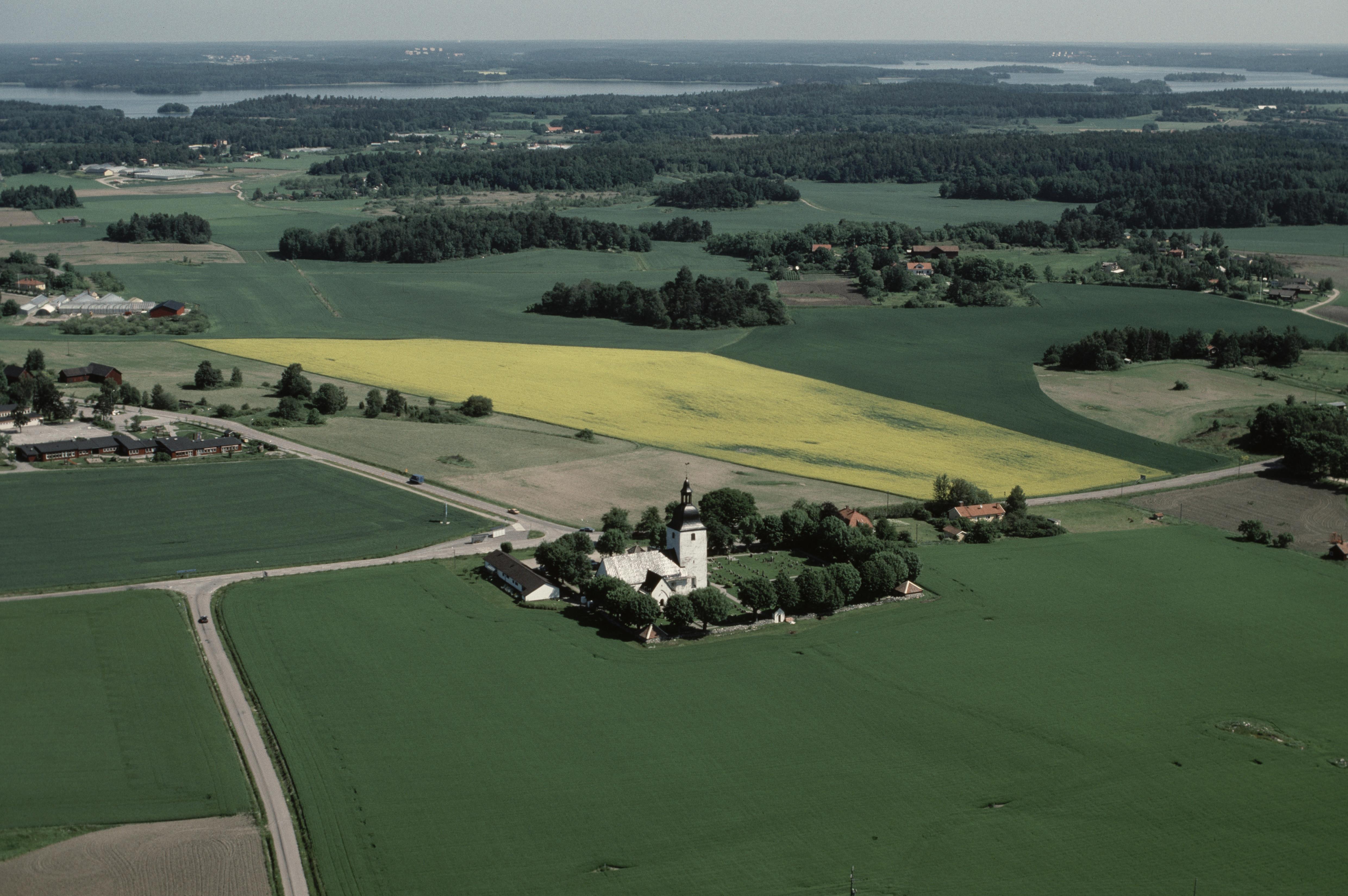 Beskrivning: Färentuna kyrka på Färingsö i Mälaren. Bilden är tagen mot (väderstreck): NO