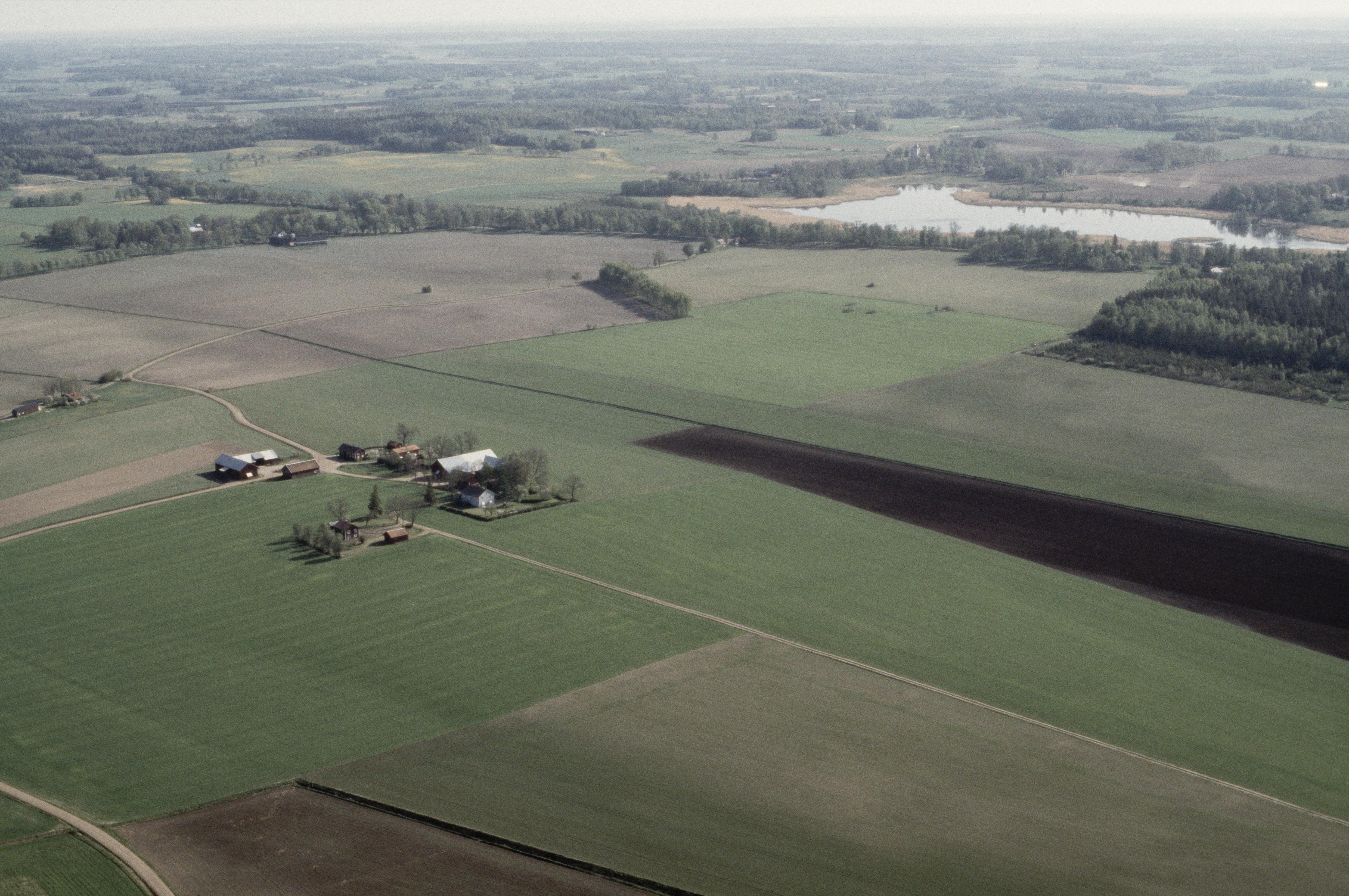 Beskrivning: Vibyslätten. Till vänster Genstorps gård och bytomt RAÄnr Viby 380, Vibysjön uppe till höger. Bilden är tagen mot (väderstreck): NO