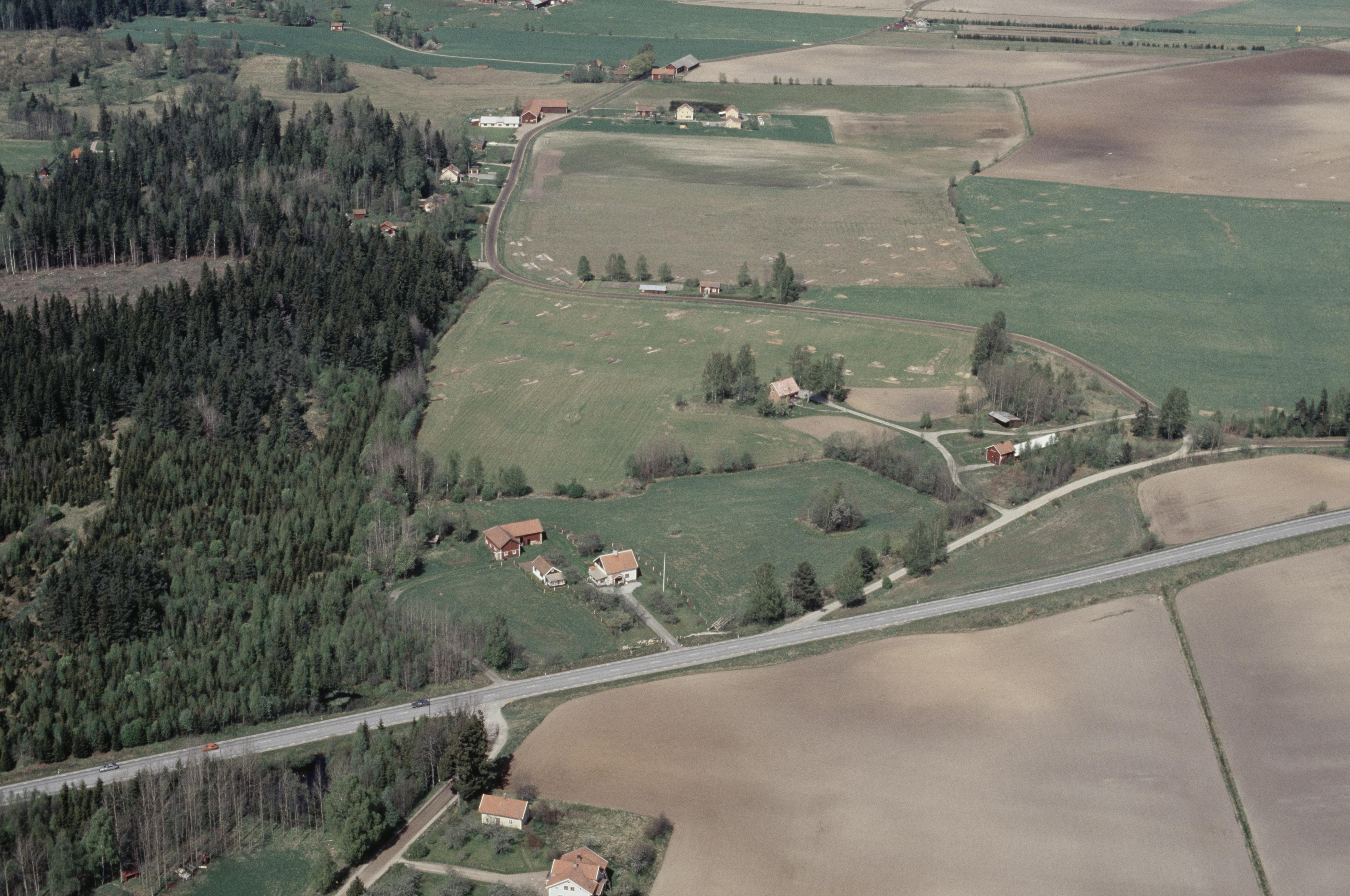 Beskrivning: Vibyslätten. Arkeologisk undersökning innan vägbygge av E3 / E20 sydväst om Vibysjön. Vid bildens mitt bytomt Viby 227:1 m.fl. I bildens övre del Stubbetorp. Bilden är tagen mot (väderstreck): N