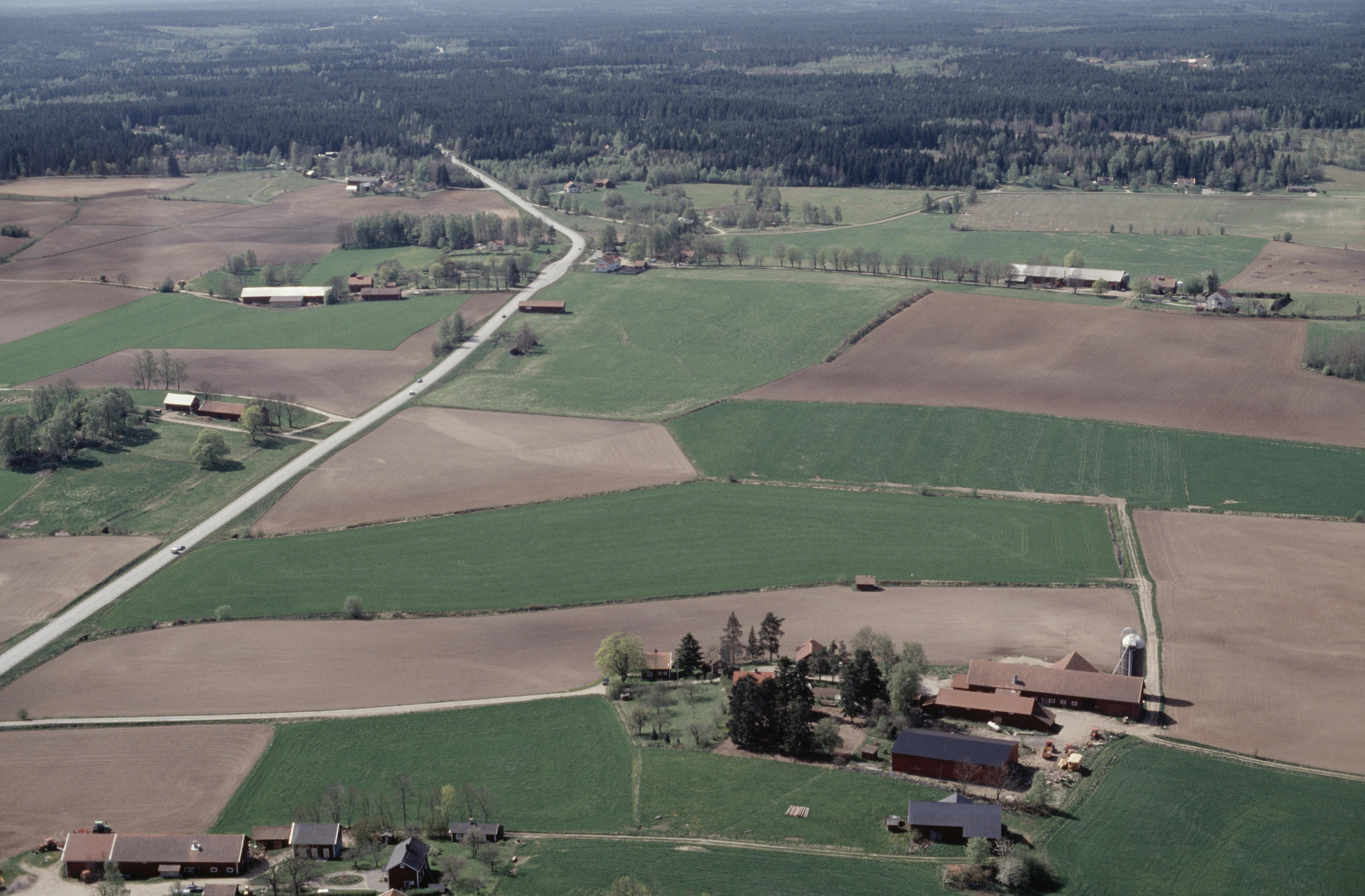 Beskrivning: Vibyslätten innan vägbygge av E3 / E20 sydväst om Vibysjön. Vid bildens mitt bytomt RAÄnr Viby 348 m.fl. I bildens övre del Västra Backa, Västra Härja och Lindbacka. Bilden är tagen mot (väderstreck): SV