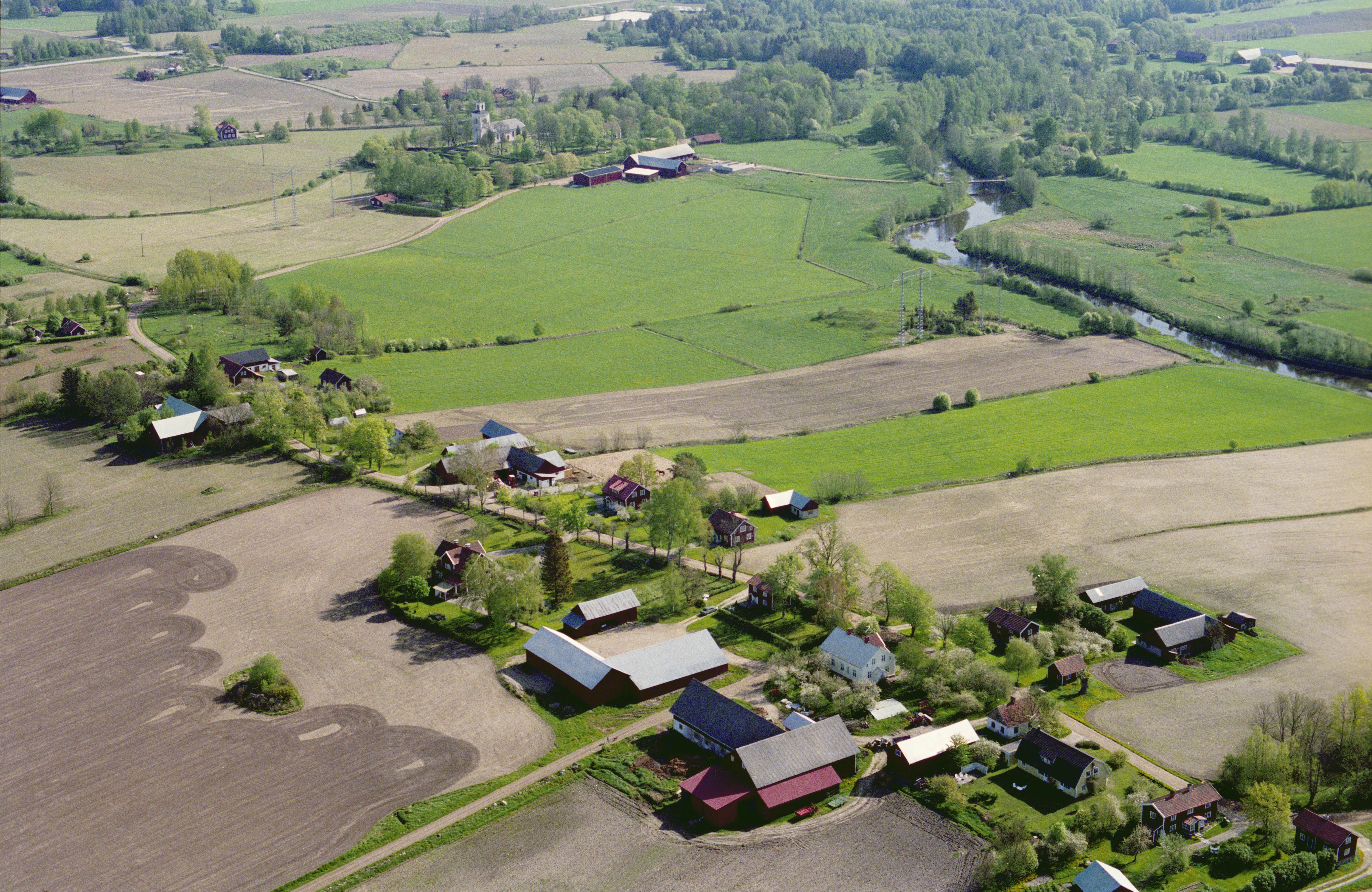 Beskrivning: Spånga by vid Svartån. Till vänster över bildens mitt Vintrosa kyrka. Bilden är tagen mot (väderstreck): NO