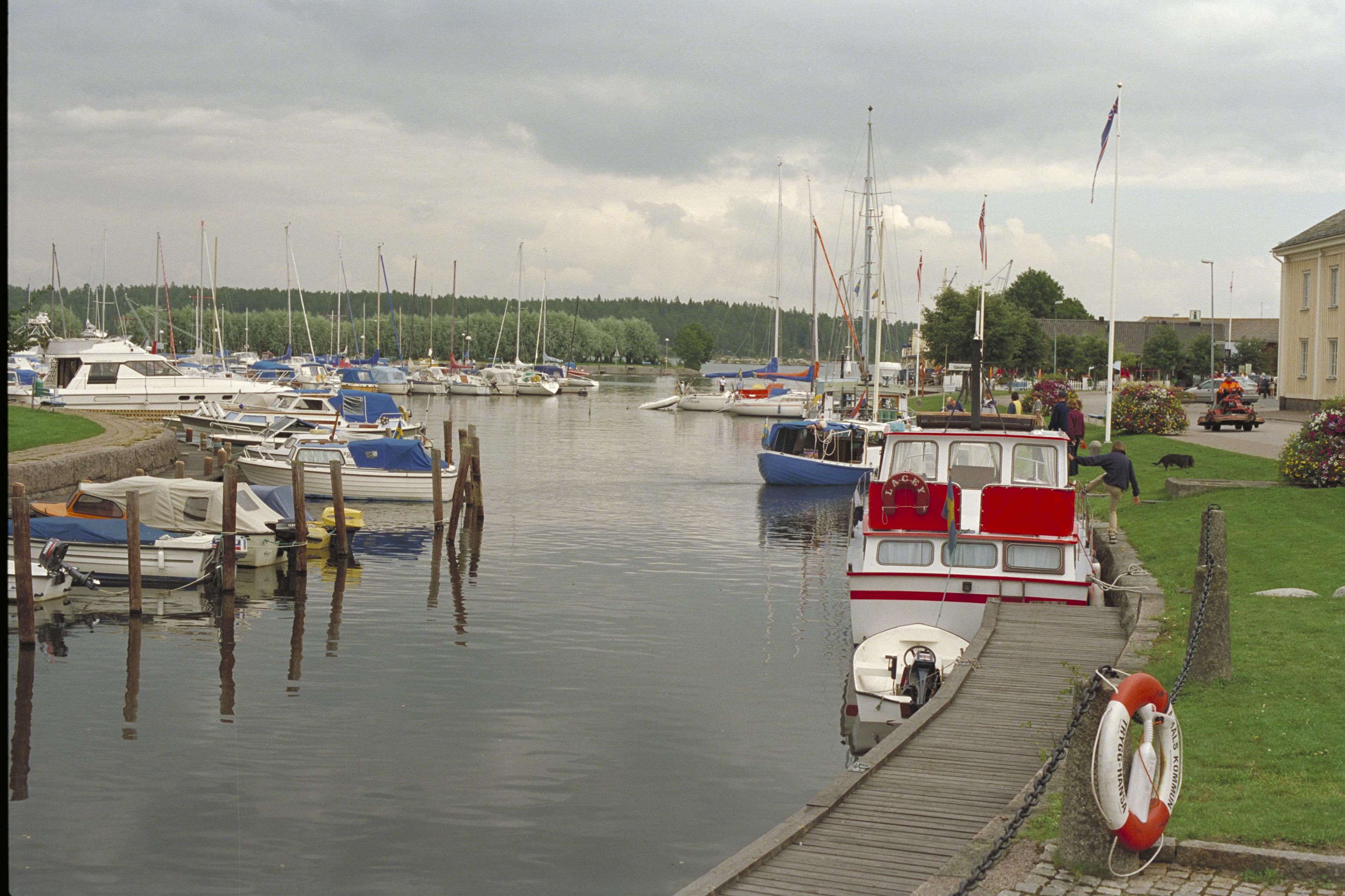 Åmålsåns utlopp i Vänern och gästhamnen.