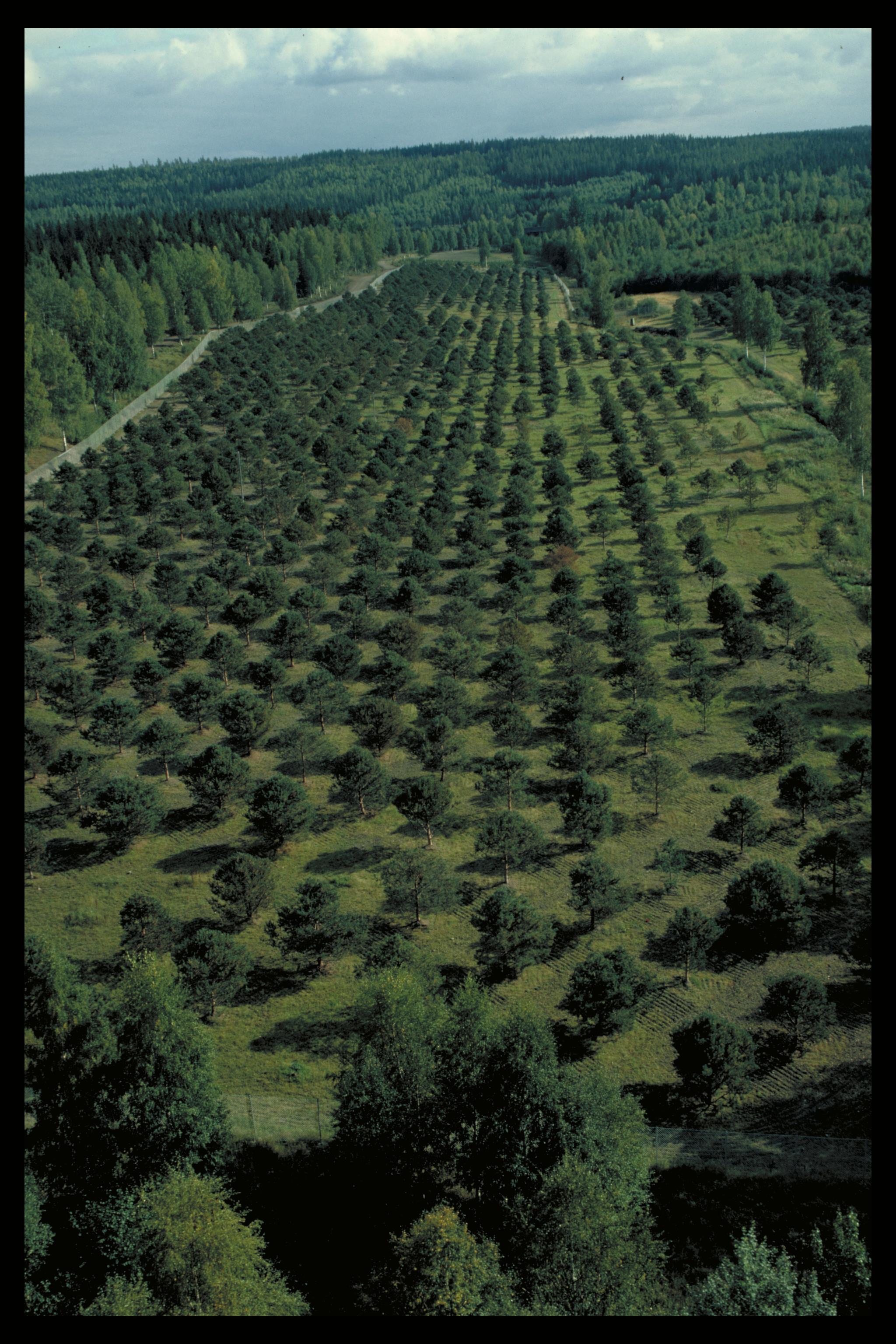Skogsvårdsstyrelsens odling av fröträd i närheten av Kratte masugn. Bilden troligen från början av 1980-talet.