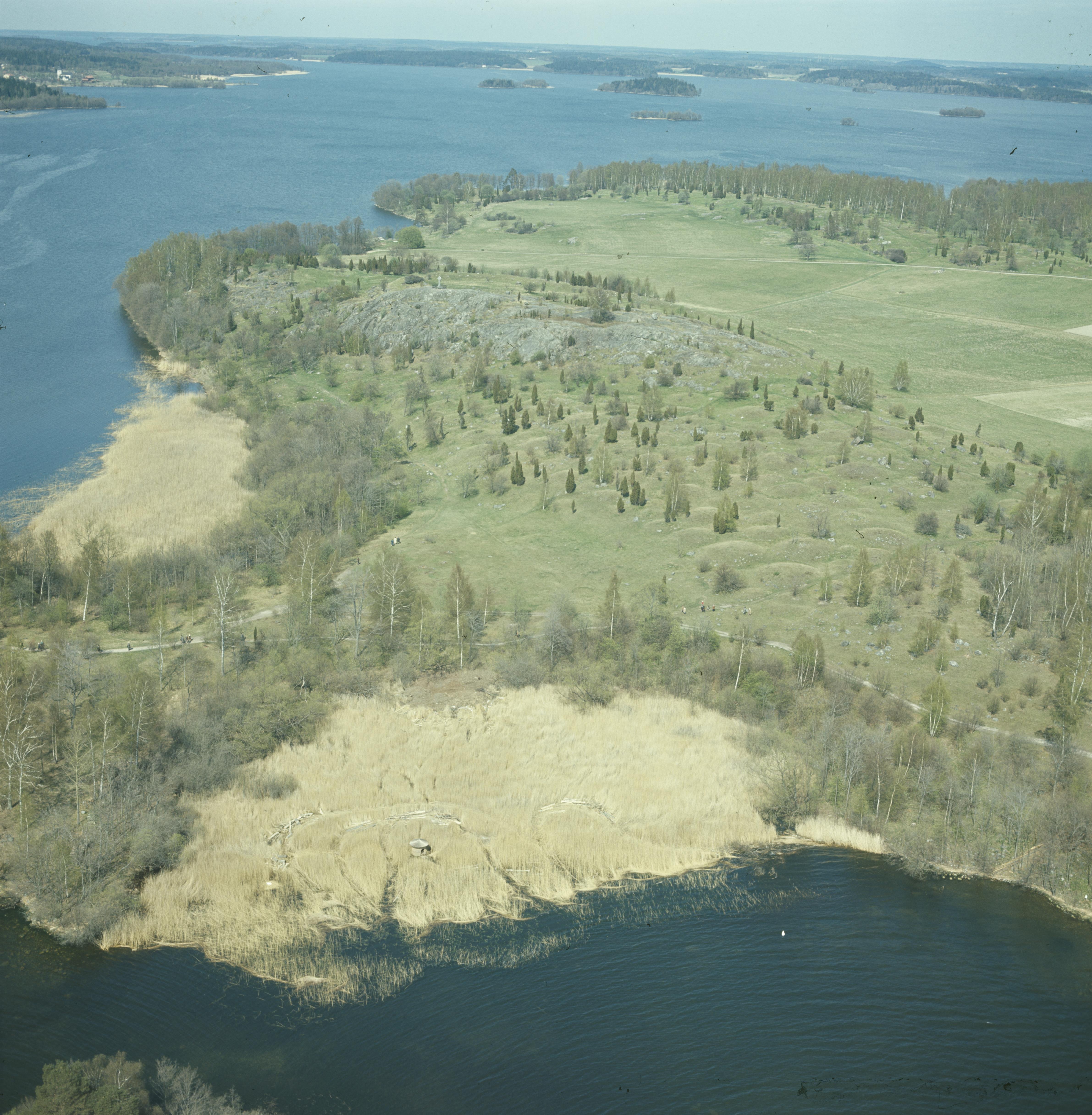 Björkö från söder med Borgberget och Svarta jorden i bakgrunden.