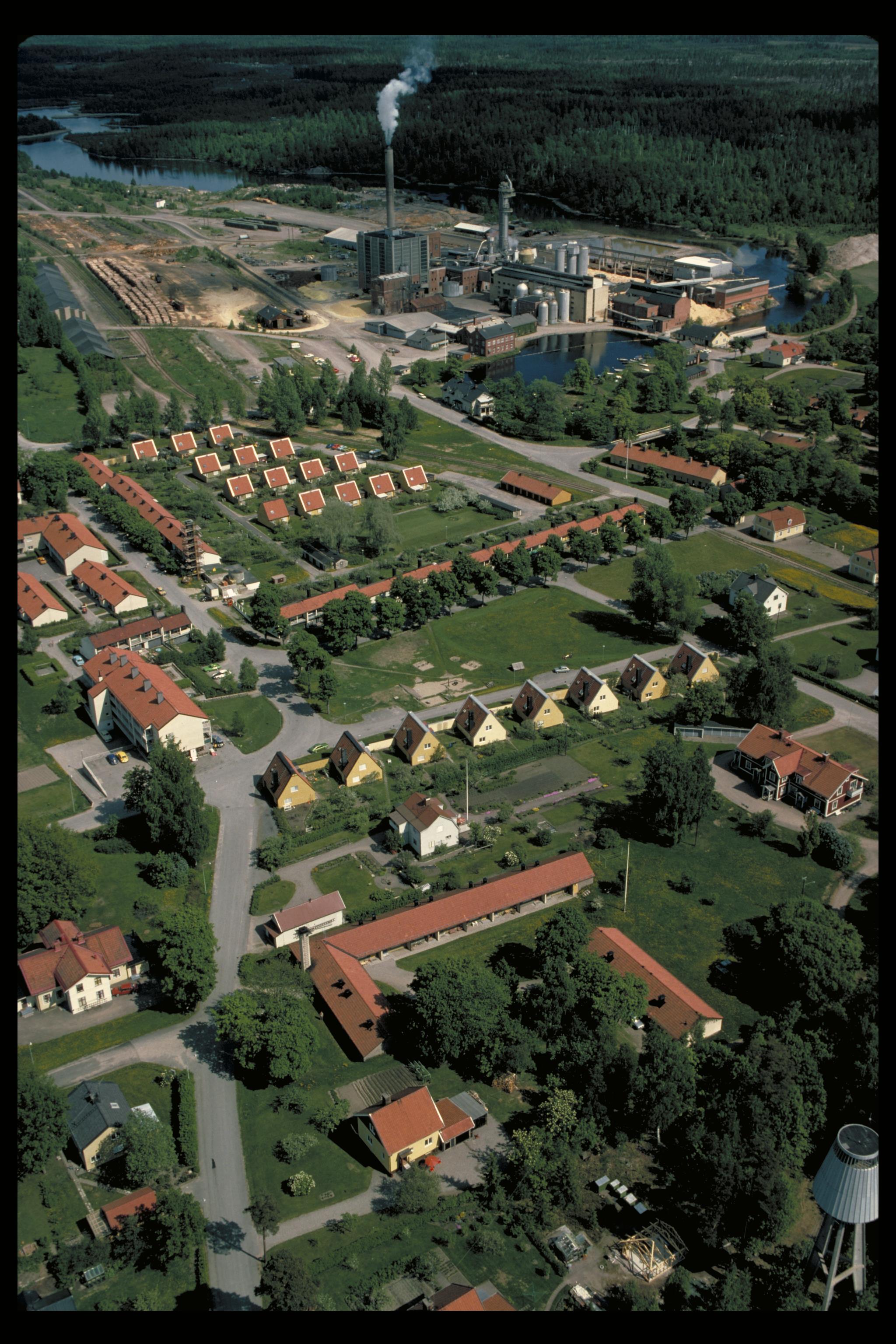 Järnbruks- och massaindustrisamhälle. Bilden troligen från början av 1980-talet.