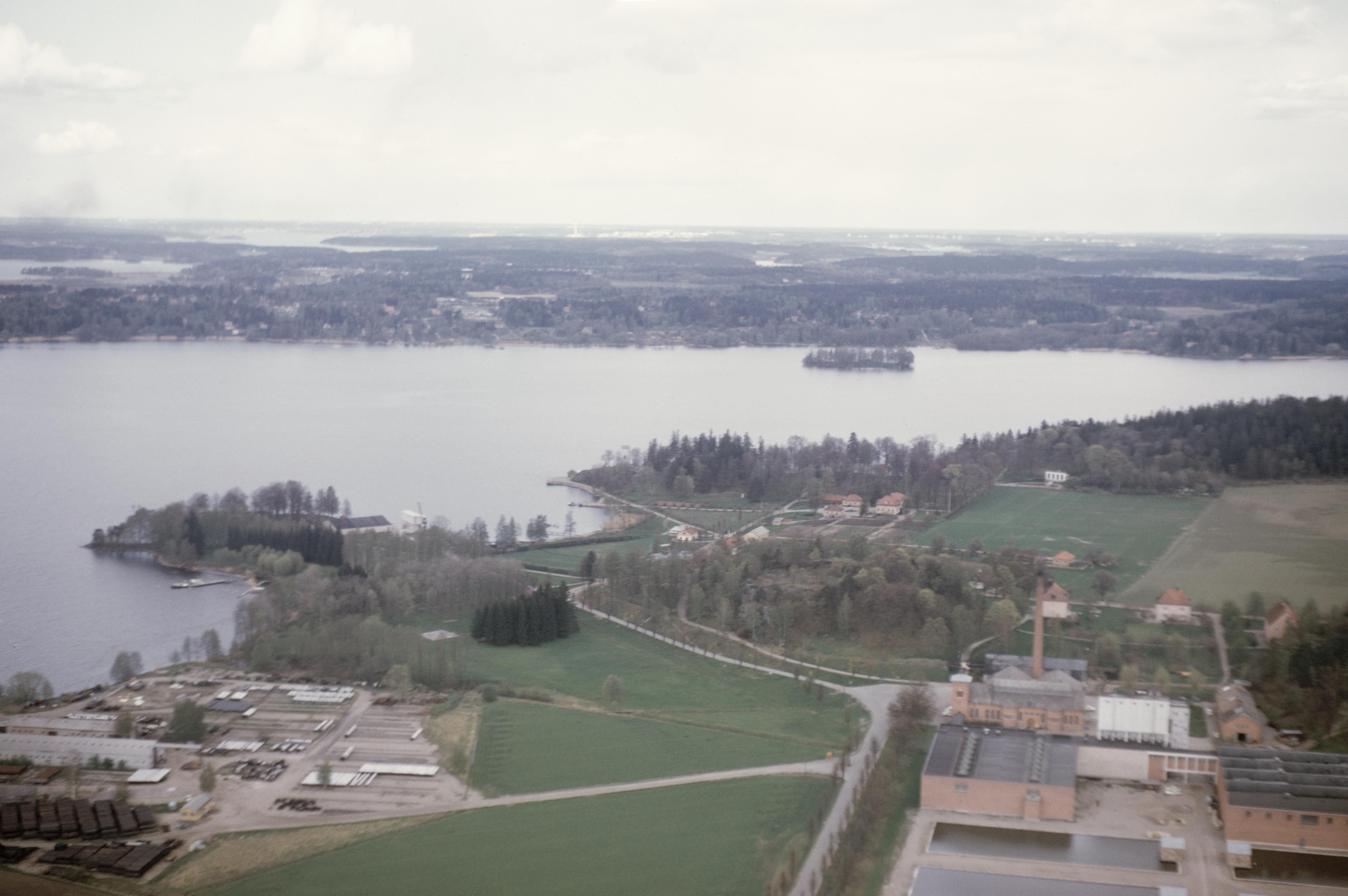 Beskrivning: Norsborgs herrgård RAÄnr Botkyrka 9:1 vid Rödstensfjärden i Mälaren. Vid bildens mitt fornborg Botkyrka 388:1 m.fl. I bildens övre del Ekerö socken. Bilden är tagen mot (väderstreck): NO