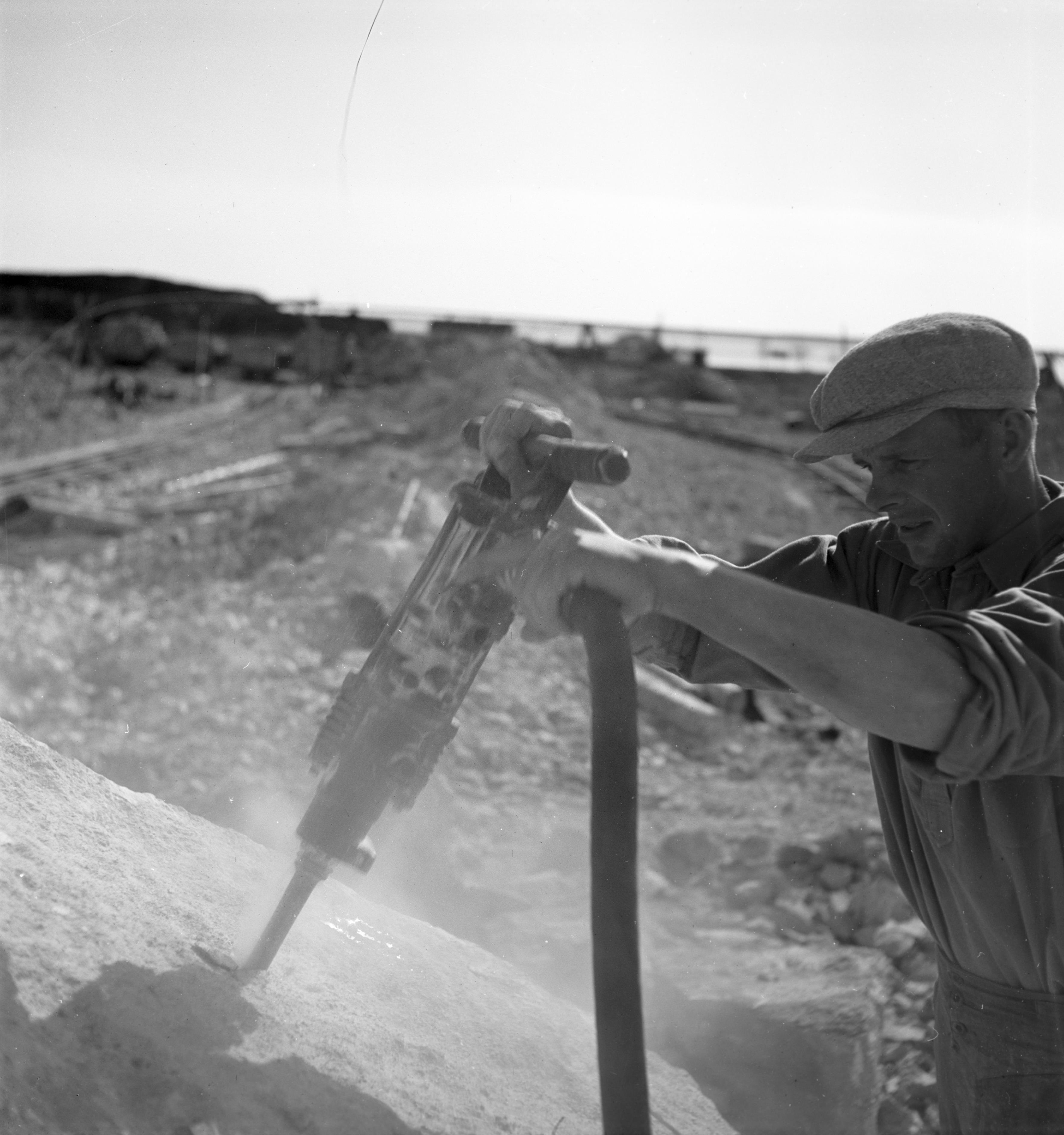 Beskrivning: Beskrivning: Arbete med tryckluftsborr. Bilden troligen från omkring 1940. Fotosyfte: