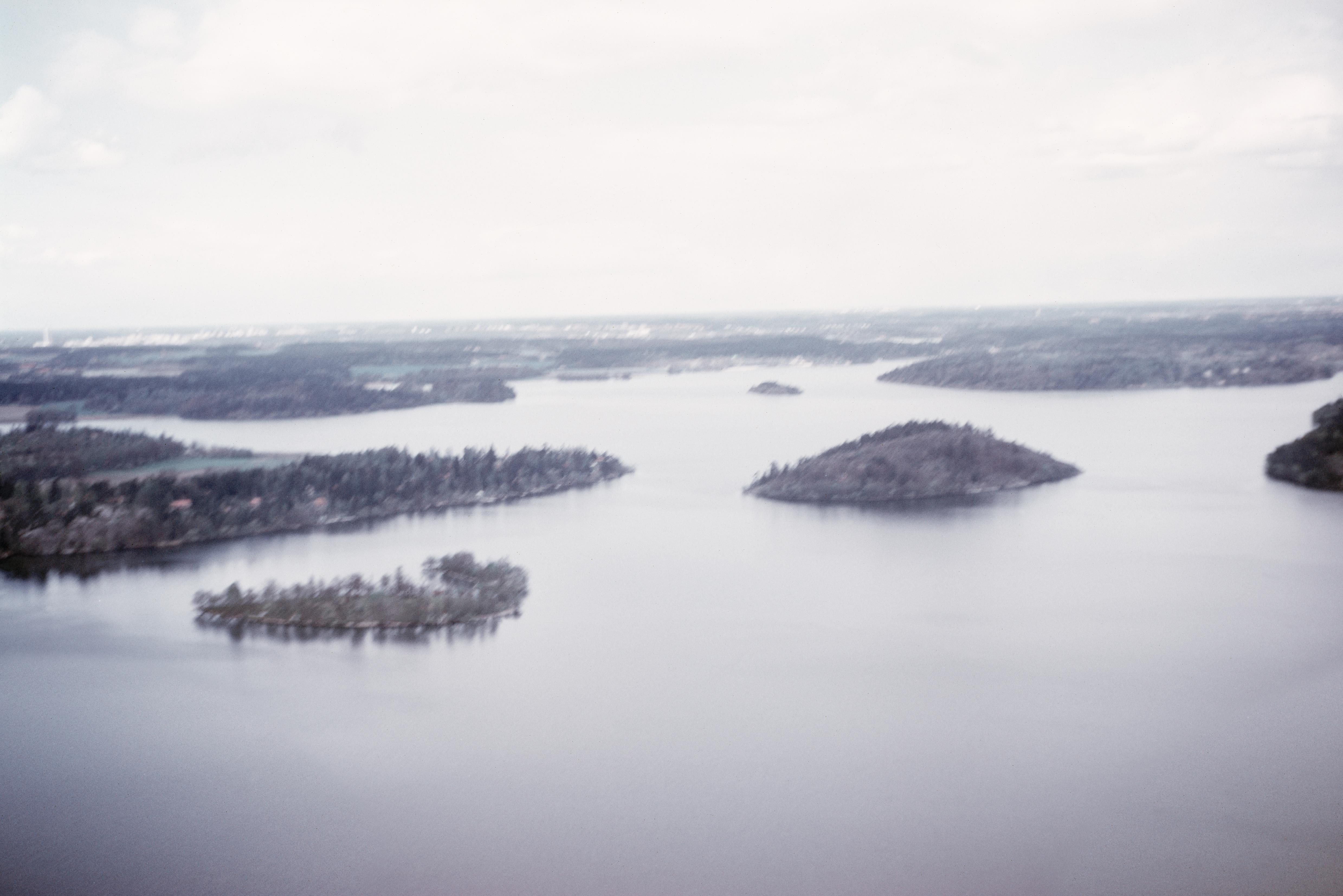 Beskrivning: Till höger om bildens mitt ön Estbröte mellan Fiskarfjärden och Vårbyfjärd i Mälaren. På ön fornborg RAÄnr Ekerö 140:1. (Obs! Bilden är oskarp.) Bilden är tagen mot (väderstreck): NNO
