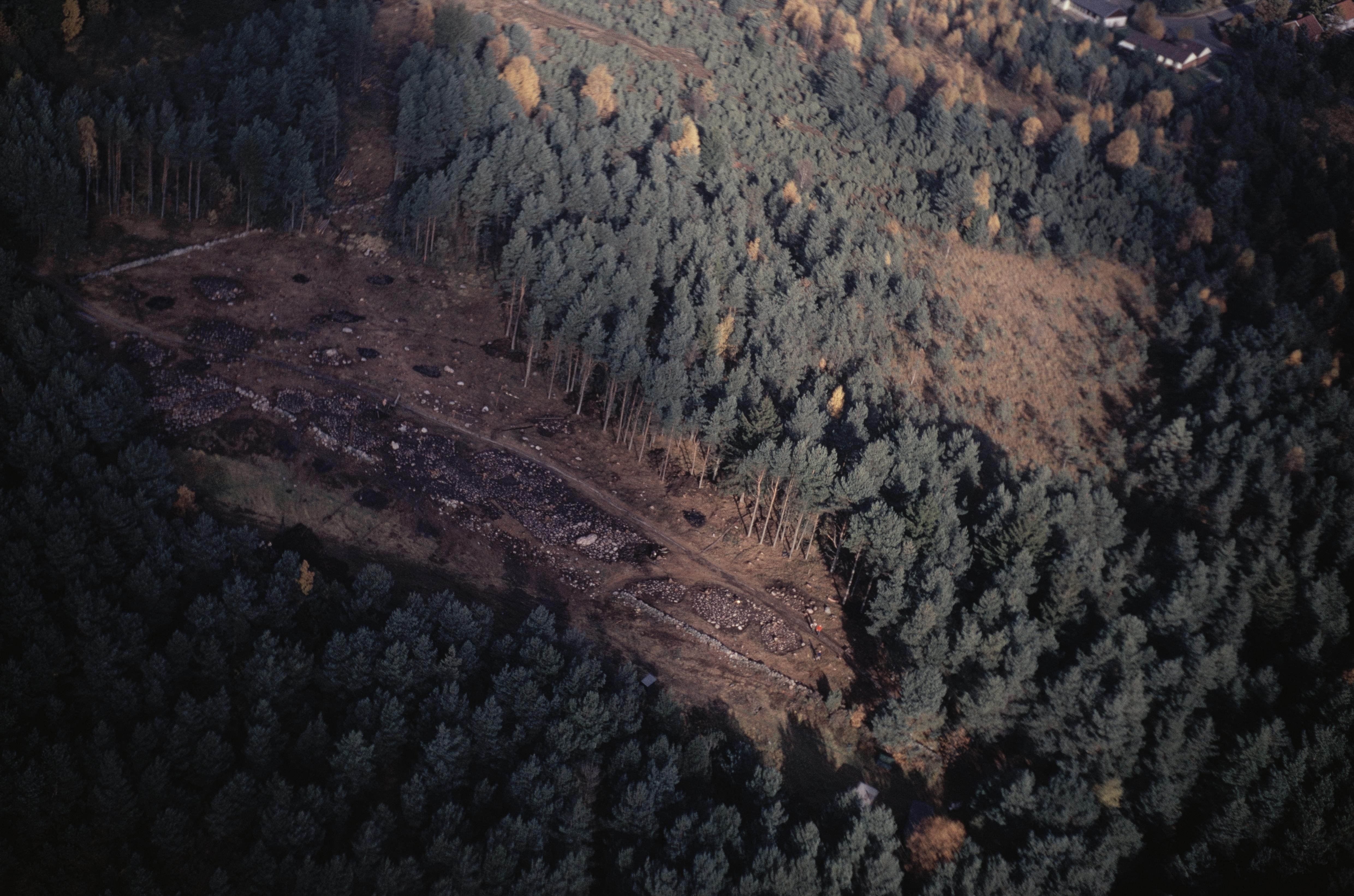 Beskrivning: Soldathögana vid Hallebo. Gravfält RAÄnr Lindome 2:1 under utgrävning. Bilden är tagen mot (väderstreck): NV