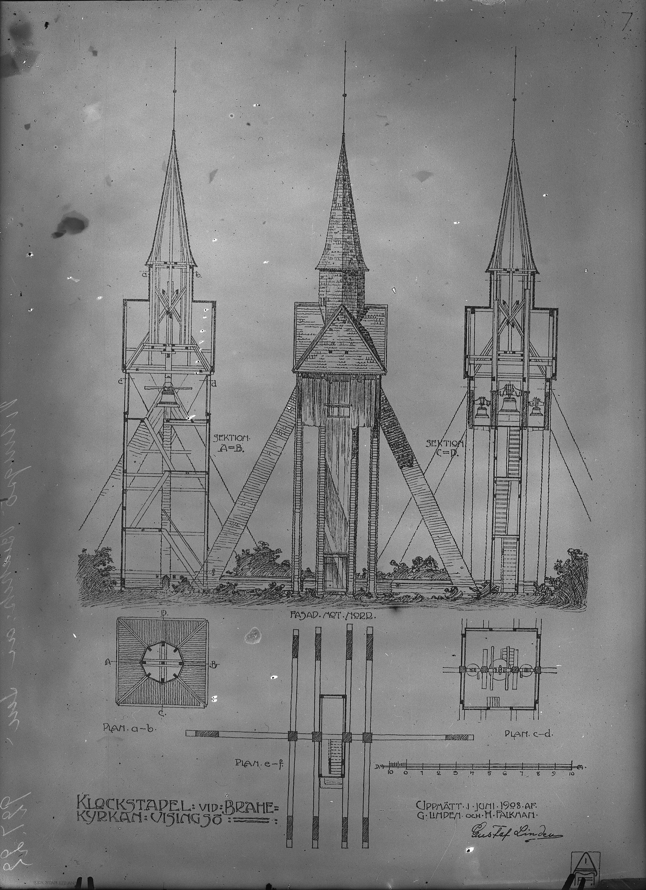 Beskrivning: Klockstapeln. Foto av uppmätningsritning från 1908.
