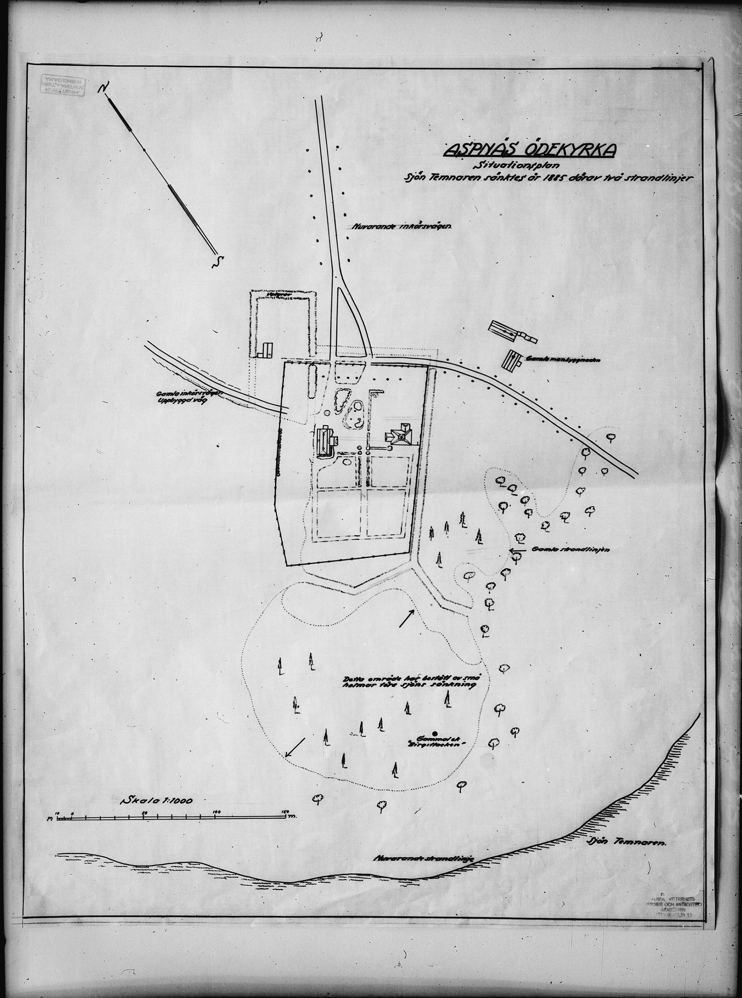 Beskrivning: Kyrkan med omgivningar, situationsplan, avfotograferad.